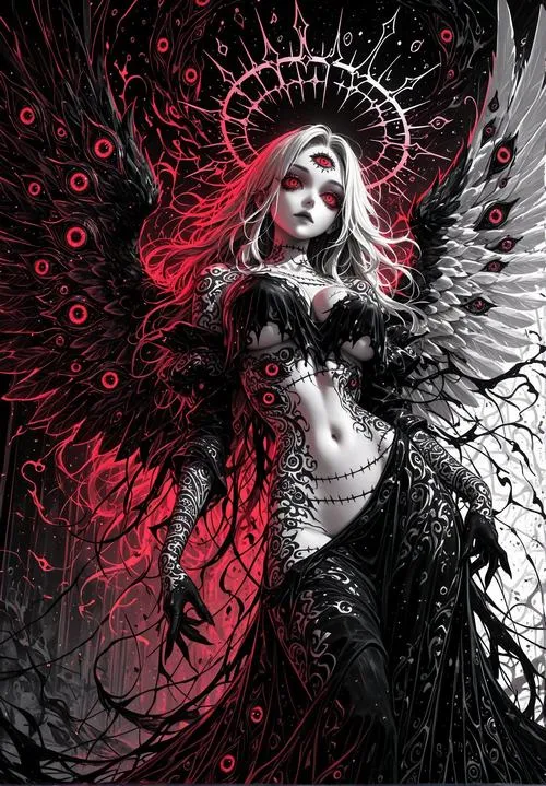 Sức hút của ác quỷ anime nữ ngầu nằm ở tương phản. Tông đen làm nền cho điểm đỏ ở mắt, ở viền sáng, ở ma lực bùng lên. Silhouette cánh lớn tạo hình rõ ràng, còn outfit da đen và phụ kiện gai nhấn sự nổi loạn. Gương mặt lạnh, ít biểu cảm nhưng ánh nhìn lại có lực. Khi đặt trong bối cảnh u tối như thành quách đổ nát hay phòng nghi lễ, nhân vật lập tức trở thành trung tâm.