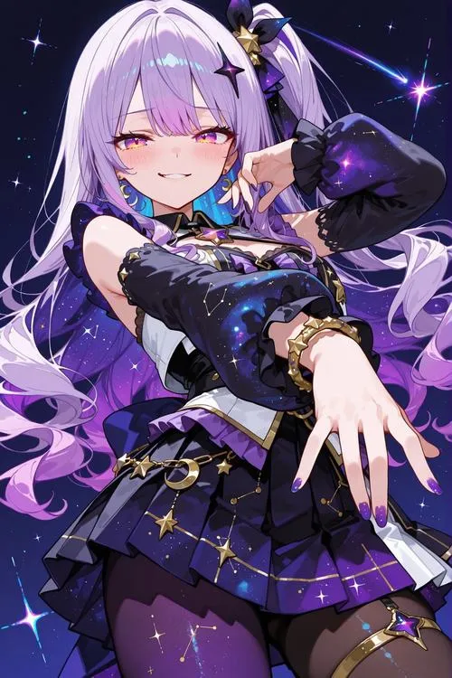 Tím là màu dễ làm người ta nhớ, nhưng không phải kiểu nhớ gắt. Nó giống một lớp sương mỏng phủ lên hình, khiến mọi thứ trông trầm hơn, sâu hơn. Ảnh anime nữ màu tím thường hợp với những lúc muốn tìm gì đó “dịu mắt” mà vẫn có điểm nhấn. Tóc tím bay nhẹ, váy xếp ly tím nhạt, nền tím than, cộng thêm ánh sáng tím neon ở viền là đủ tạo ra cảm giác vừa hiện đại vừa thơ.