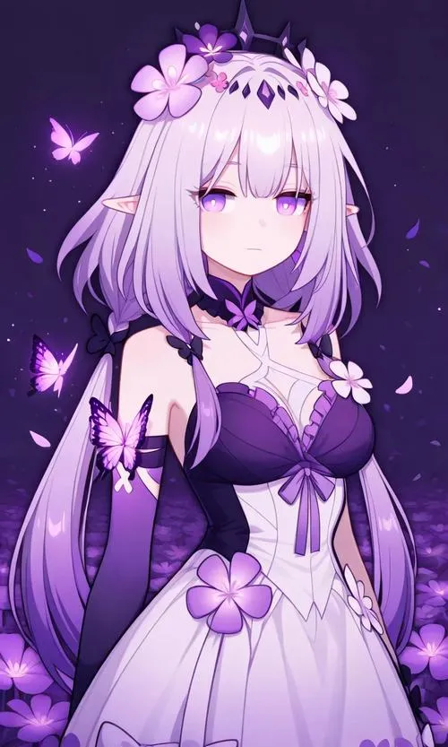 Ảnh anime cho nữ màu tím là kiểu hình minh họa nhân vật nữ theo phong cách anime, lấy gam tím làm chủ đạo từ tóc, mắt, trang phục đến nền và ánh sáng. Điểm nổi bật nằm ở chuyển sắc tím khói, tím than hoặc viền tím neon, kết hợp bokeh tím và hạt sáng li ti.
