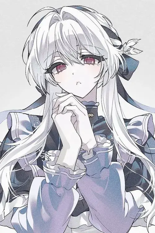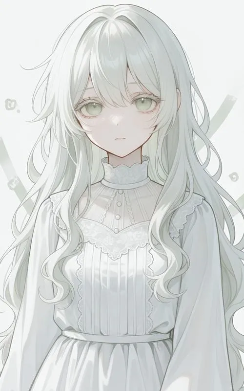 Nhân vật anime nữ với tóc trắng và ánh mắt gợi cảm xúc tĩnh lặng