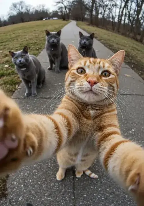 Ảnh trang cá nhân của tổ nhóm 4 con mèo giữ cân bằng bố cục chuẩn xác.