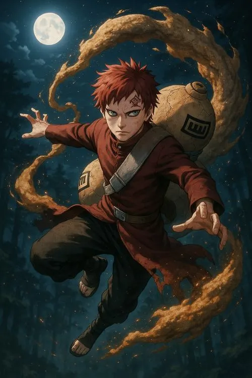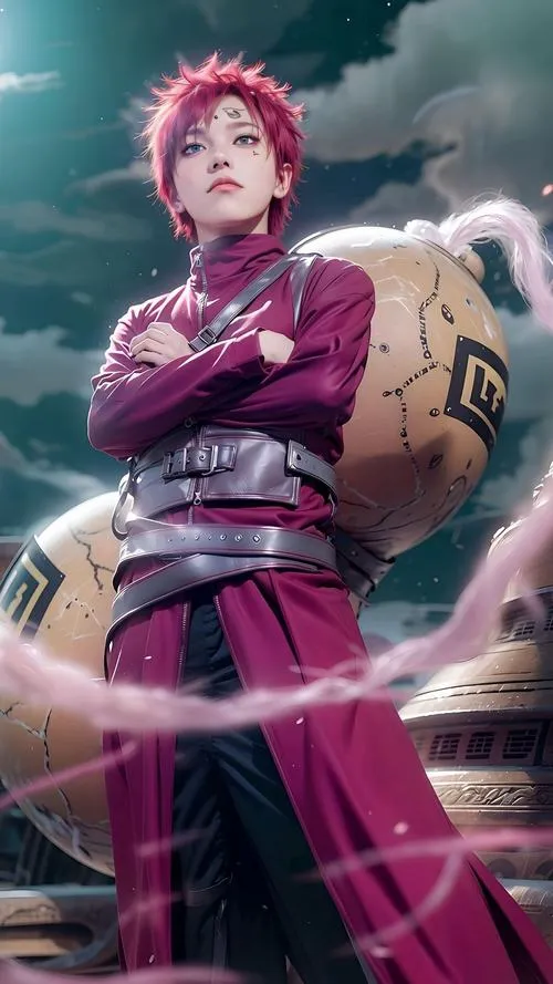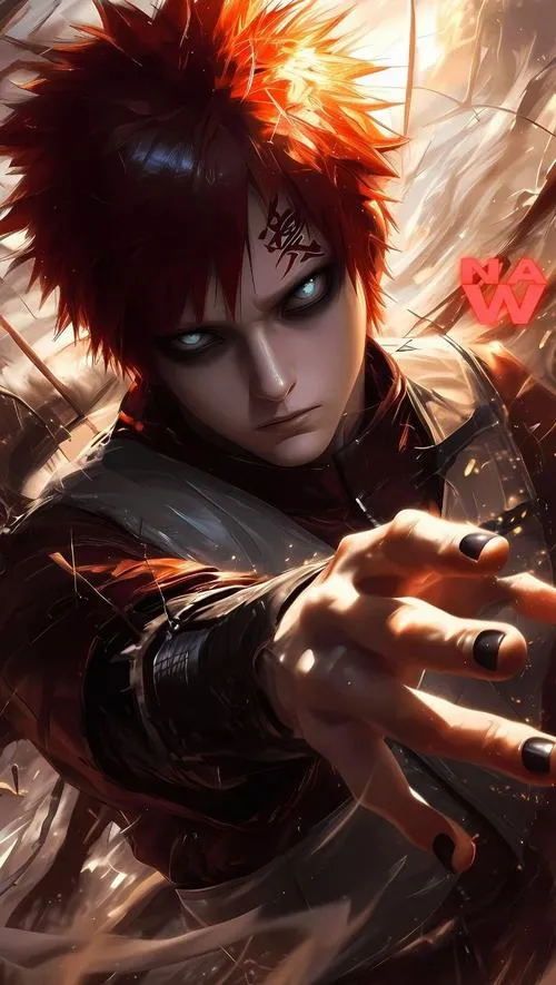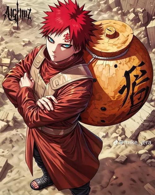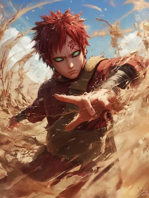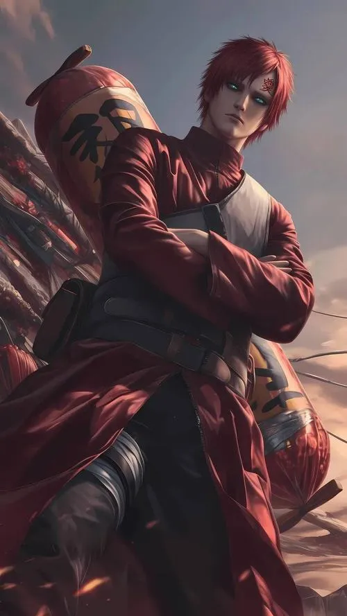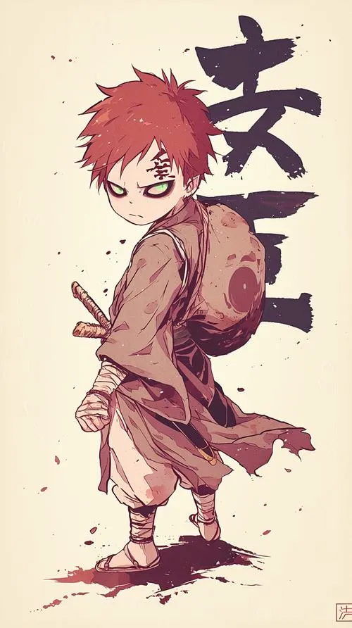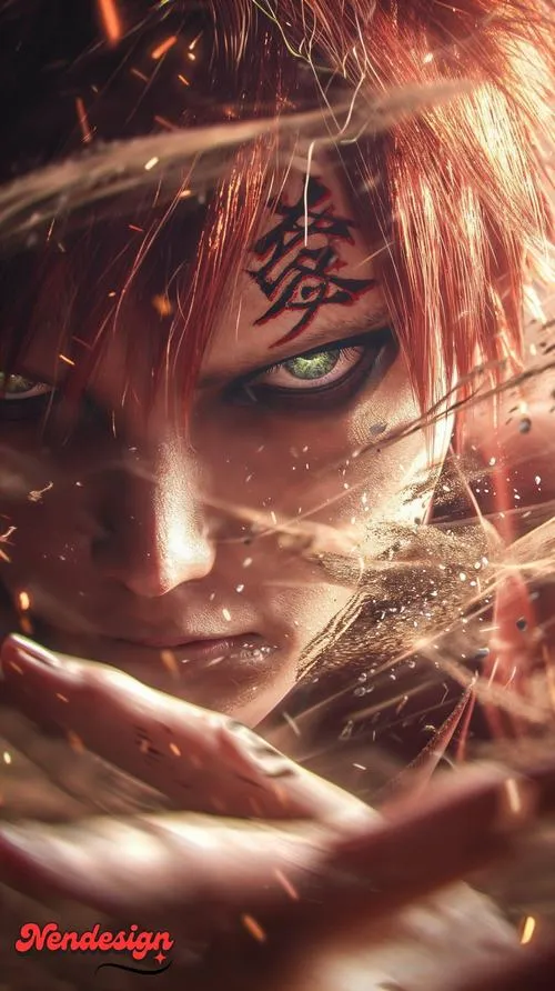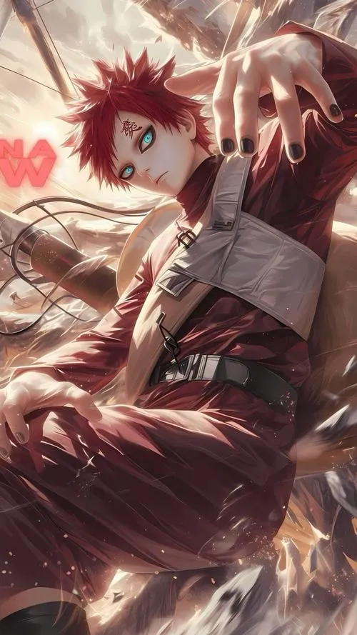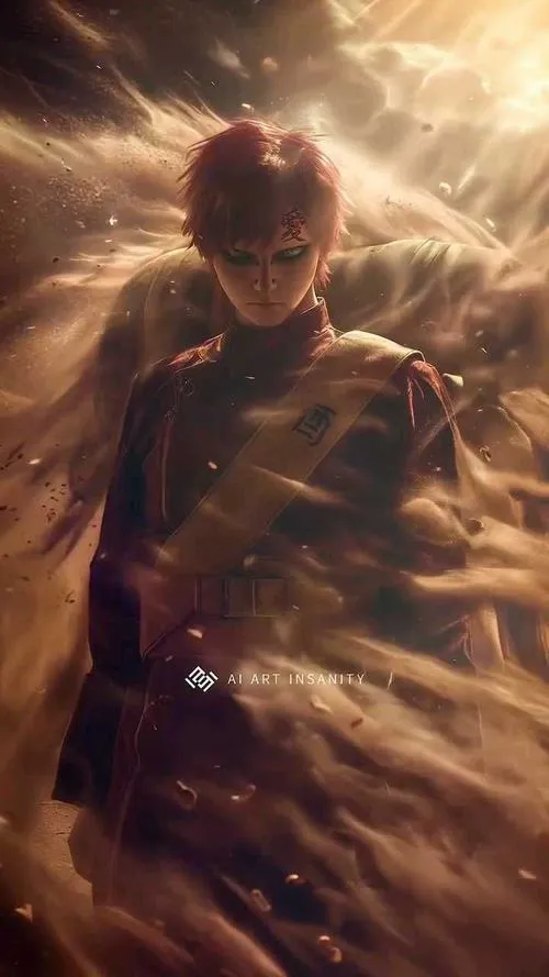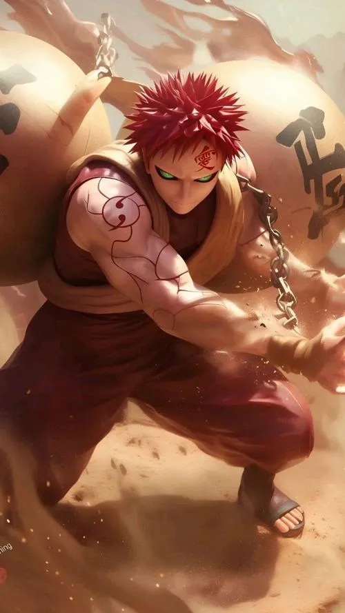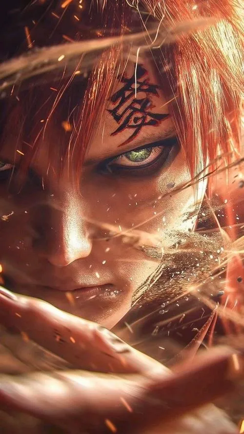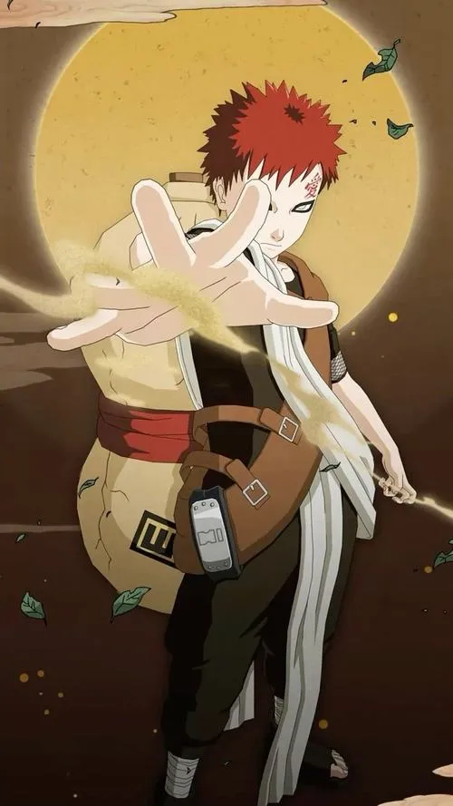 Ảnh Gaara là nhóm hình tập trung vào mái tóc đỏ, chữ Ái trên trán và hiệu ứng cát đặc trưng của Làng Cát. Tông màu thường là gam đất, be cát, nâu đỏ, tạo cảm giác khô, gắt và cô độc. Chi tiết hay gặp là hồ lô, cát xoáy, ánh mắt viền đen, hợp làm hình nền, poster, ảnh đại diện kiểu trầm và “có lực”.