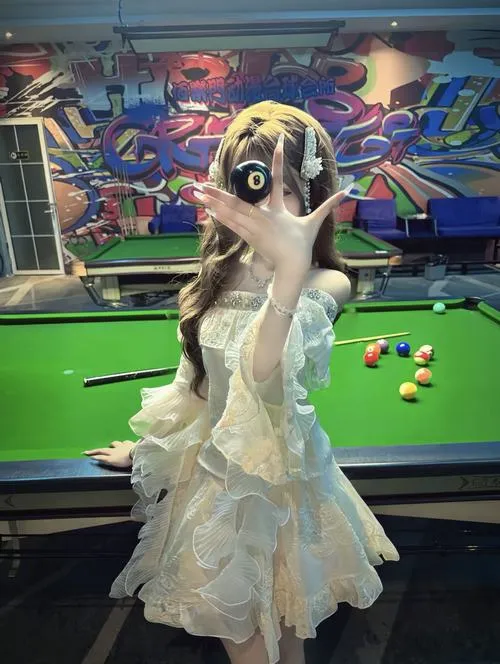 Vẻ ảnh girl bida giữa bida 8 bi nổi