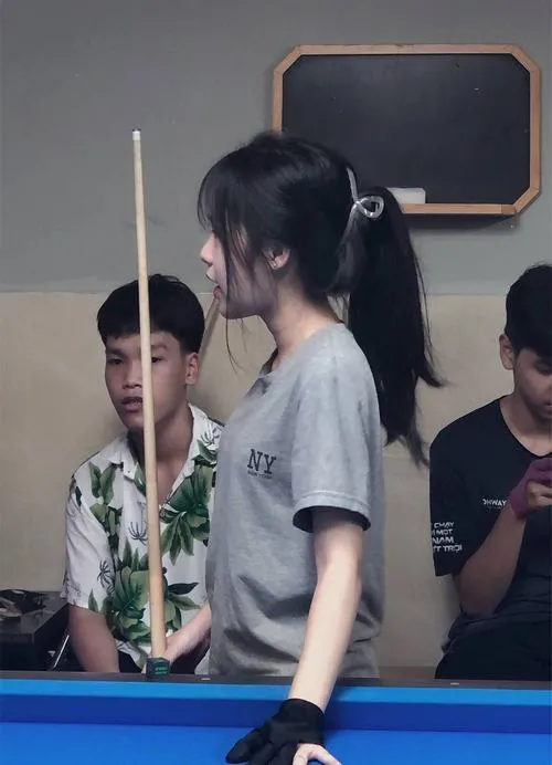 Không cần tạo dáng cầu kỳ, chỉ một khoảnh khắc cầm cơ, ánh mắt hướng về bi cái cũng đủ khiến anh em cảm thấy dễ chịu. Ảnh gái xinh chơi bida luôn có sức hút khó giải thích.