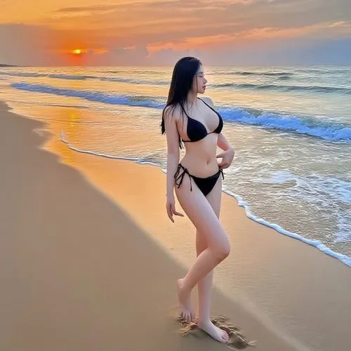 Bộ ảnh gái xinh mặc bikini đi biển lần này thiên về cảm giác đời thường, không quá trau chuốt. Từng khung hình ghi lại khoảnh khắc thả lỏng, lúc đứng nhìn ra xa, lúc bước chậm trên cát. Bikini đơn giản nhưng tôn dáng, kết hợp với ánh nắng tự nhiên khiến tổng thể vừa gần gũi vừa cuốn hút. Xem ảnh có cảm giác như đang đi biển cùng nhân vật trong khung hình.