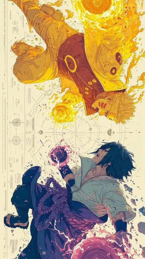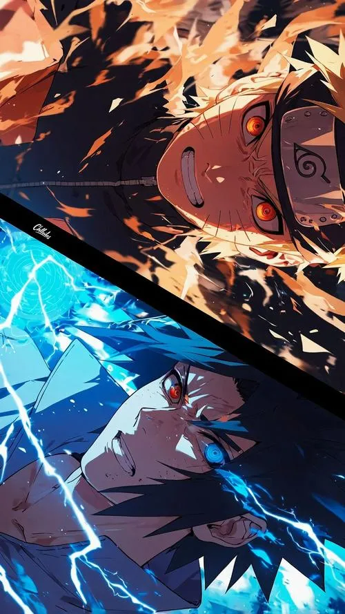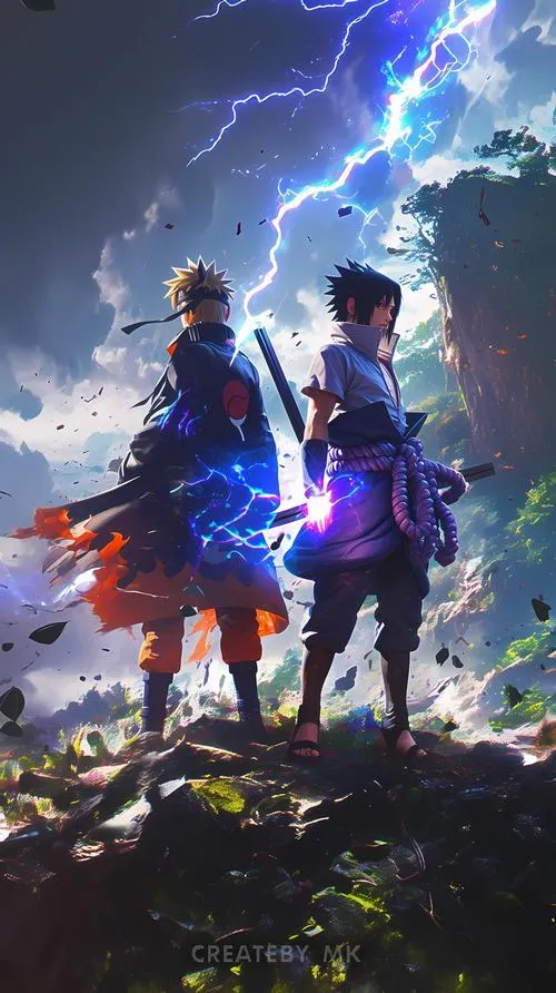 Ảnh hình nền Naruto và Sasuke là dạng hình nền tập trung vào hai nhân vật làm trung tâm, thường dùng bố cục đối xứng hoặc chia đôi để nhấn mạnh đối lập. Màu cam, xanh điện, đen tím hay xuất hiện, đi cùng hiệu ứng chakra xoáy và tia sét. Hợp làm nền điện thoại, máy tính vì tạo cảm giác mạnh, kịch tính, nhìn vào là thấy năng lượng.