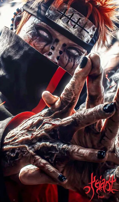 Điều làm ảnh Pain ở lại lâu không phải là trang phục hay kỹ xảo, mà là cảm giác con người bị mài mòn bởi chiến tranh. Đôi mắt Rinnegan đẹp theo kiểu lạnh lẽo, giống một thứ công lý không còn mềm. Nhìn Pain, người ta thấy sự cực đoan có lý do, thấy hòa bình cũng có thể thành gánh nặng.