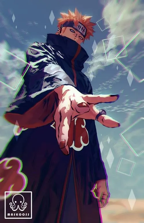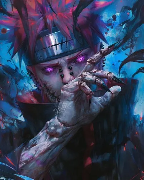 Ảnh Pain thường đại diện cho quyền lực đi kèm cô độc. Cái nhìn Rinnegan và nét mặt điềm tĩnh làm người xem cảm giác như đang đứng trước một bản án, không có chỗ thương lượng. Nhưng càng u ám, bức ảnh càng gợi chuyện về mất mát và lý tưởng bị bẻ cong.
