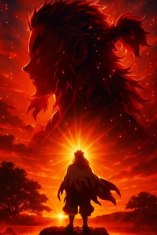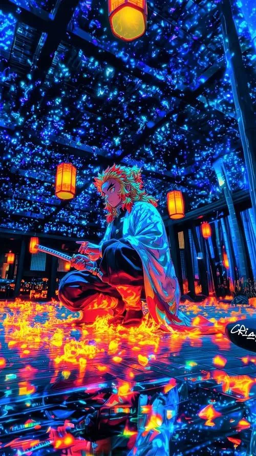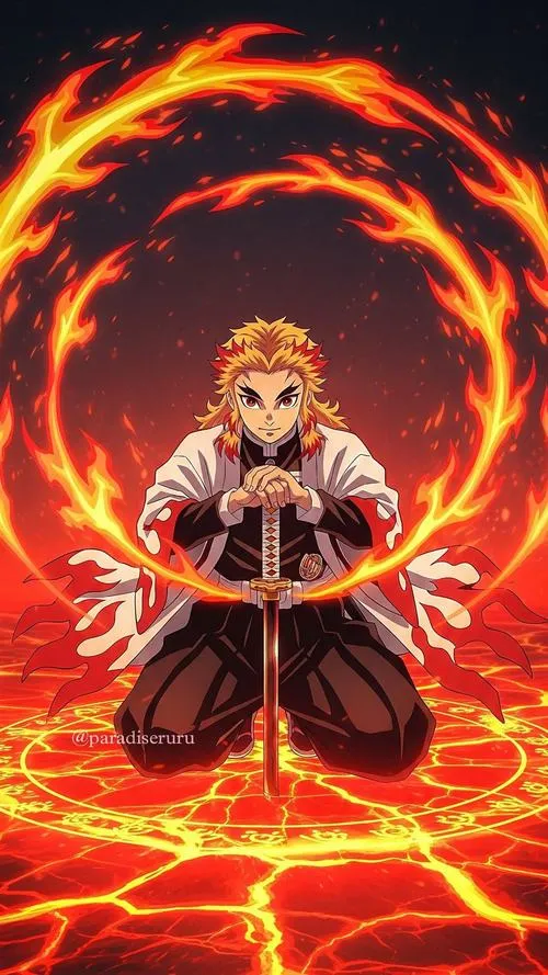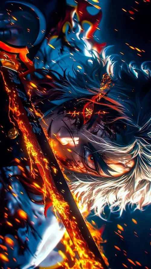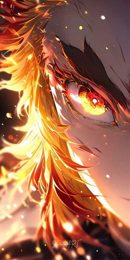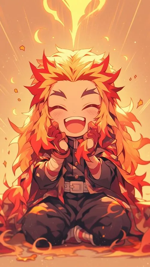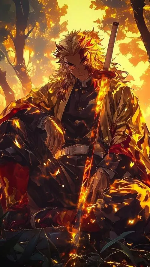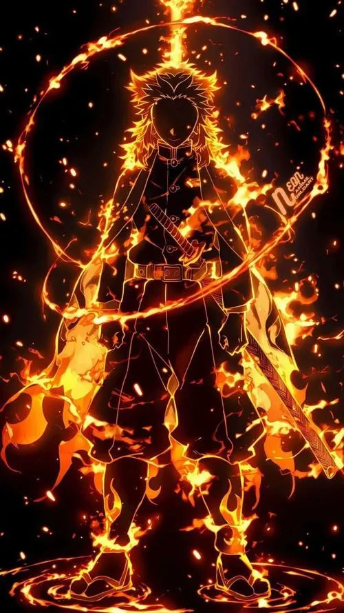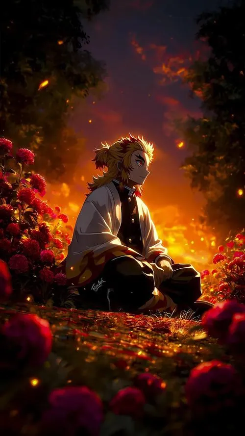 Ảnh Rengoku Kyojuro thường gợi cảm giác chính khí và tinh thần bảo vệ. Ngọn lửa trở thành biểu tượng của dũng cảm, không bỏ cuộc, và truyền động lực cho người xem. Tông màu nóng làm không khí ấm lên, nhưng nền tối giữ sự nghiêm túc, tạo đúng chất trụ cột.