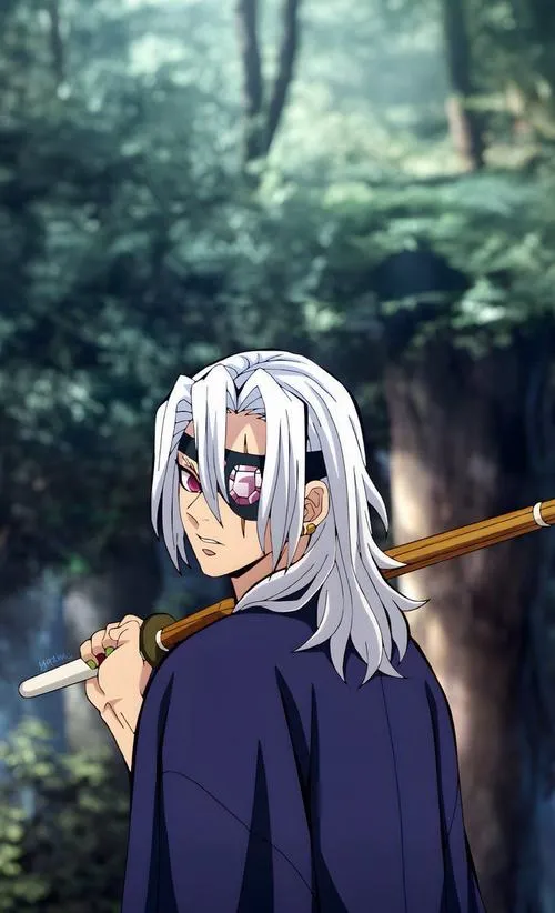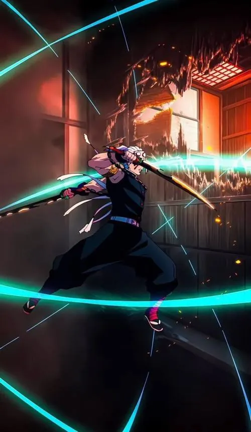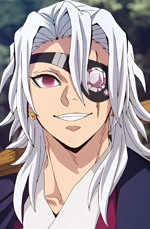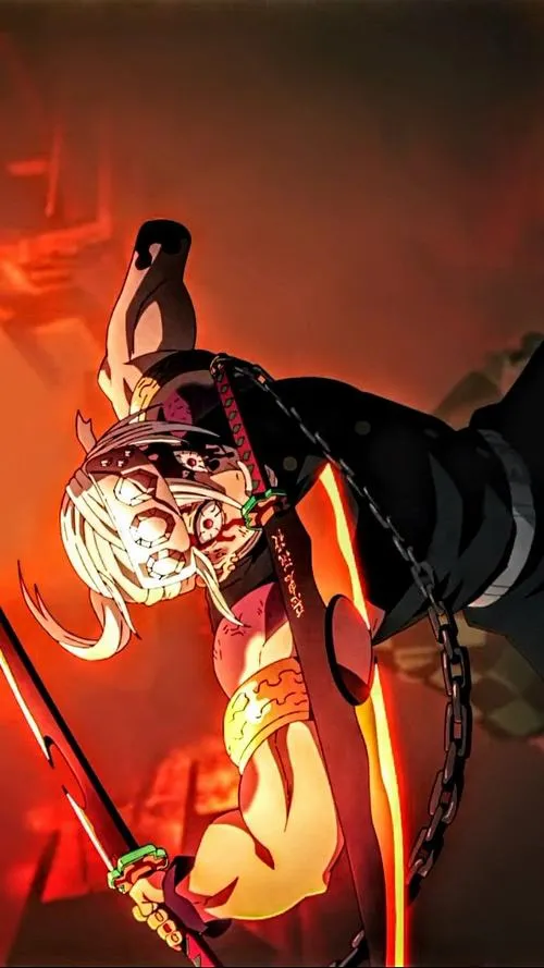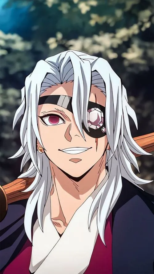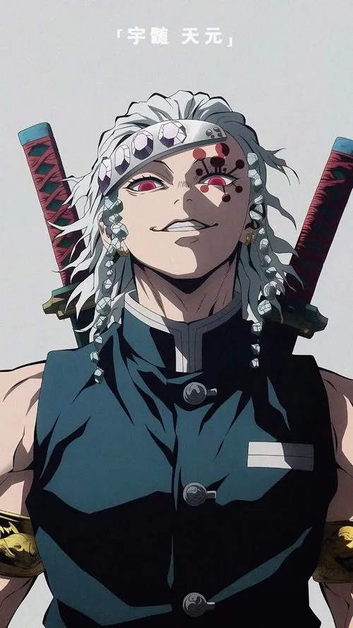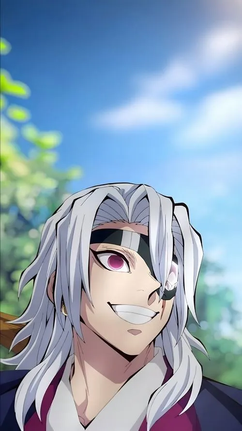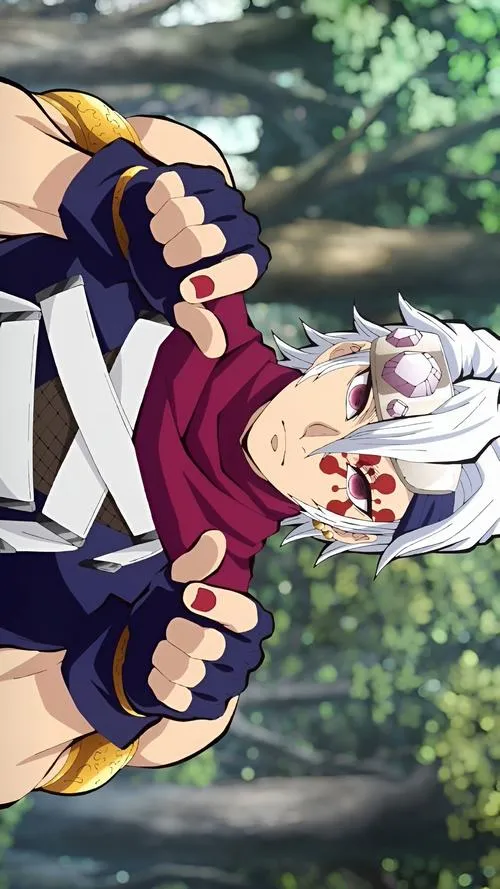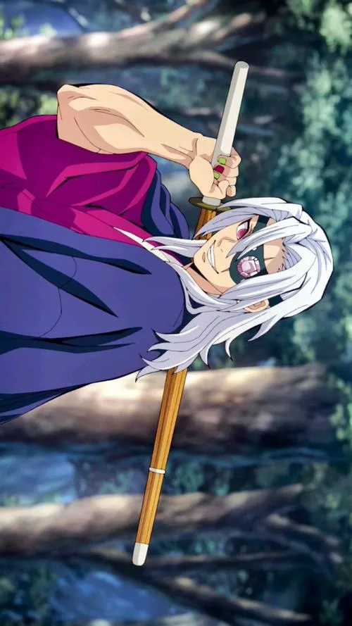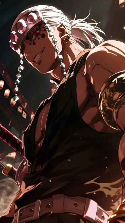 Ảnh Uzui Tengen là kiểu ảnh nhân vật hành động mang sắc thái rực rỡ và hào nhoáng, nổi bật bởi băng đô đính đá, hoa văn tím đỏ và hiệu ứng sáng tối như ánh đèn sân khấu. Chi tiết dày nhưng rõ, điểm rơi thường nằm ở mắt và trang sức. Hợp làm ảnh nền, ảnh bìa, hoặc minh họa vibe bùng nổ, tự tin.