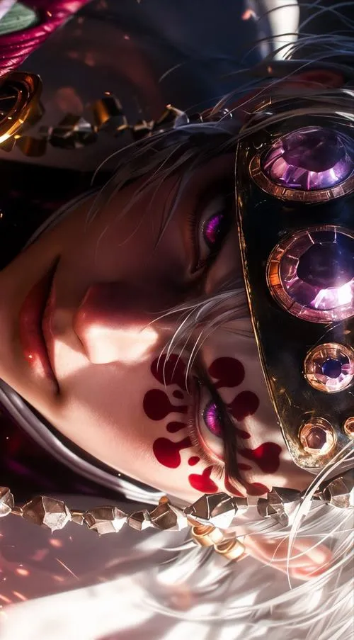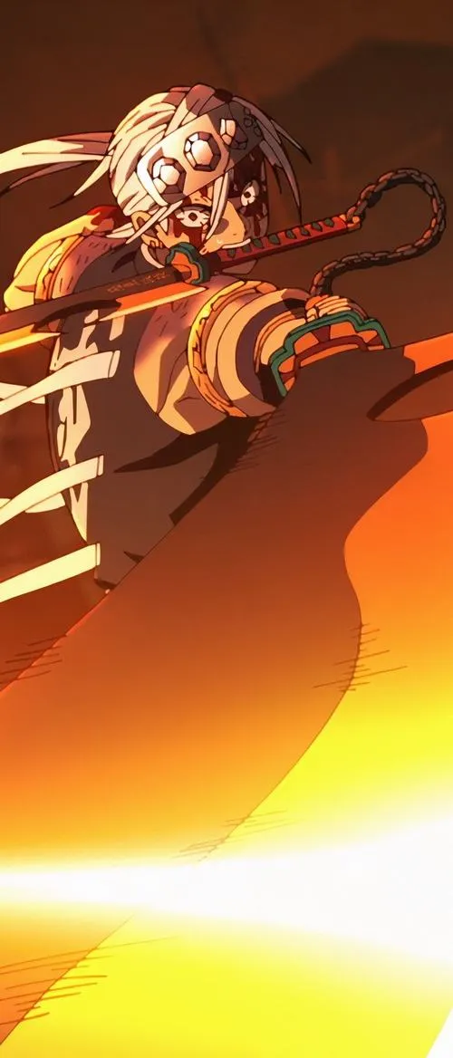 Điểm hay của ảnh Uzui Tengen nằm ở tương phản và cấu trúc chi tiết. Băng đô đính đá, hoa văn trên áo, quấn tay và vũ khí đều là những mảng dễ bắt sáng, nên ảnh lên rất “đắt”. Thêm góc chụp thấp hoặc góc nghiêng, thần thái nhân vật càng áp đảo. Vì vậy ảnh hợp làm hình nền, ảnh bìa, hoặc dùng để tạo mood mạnh cho bài viết về phong cách rực rỡ.