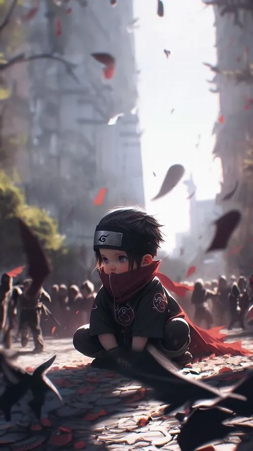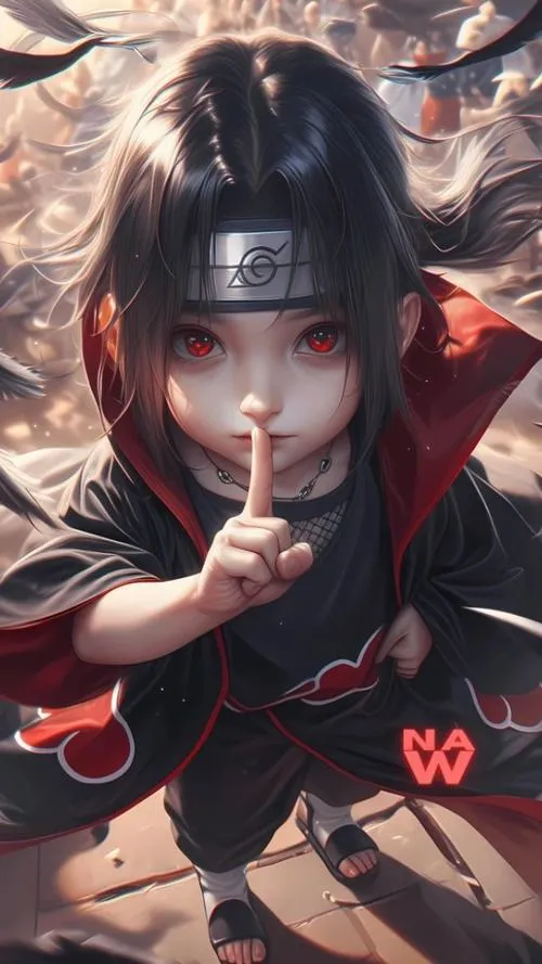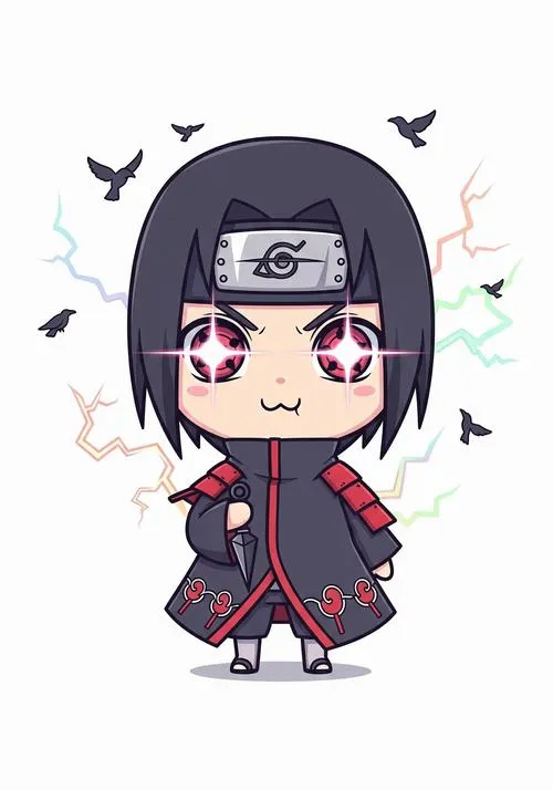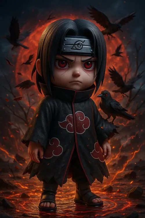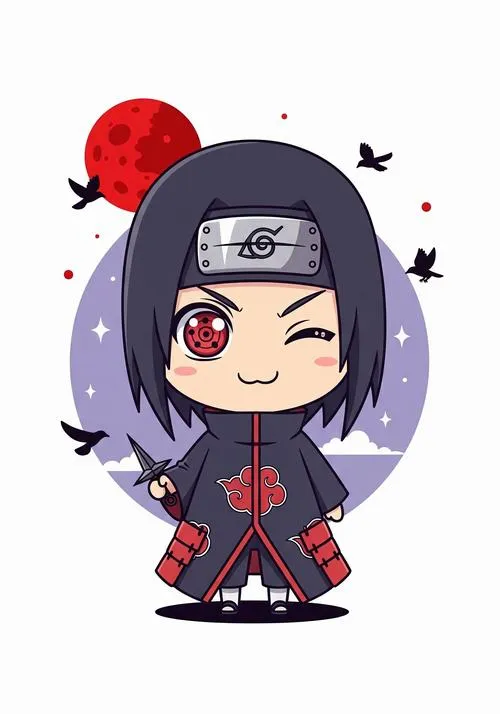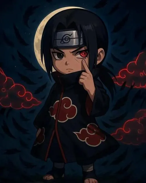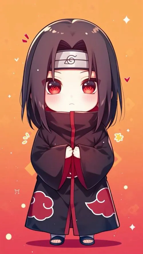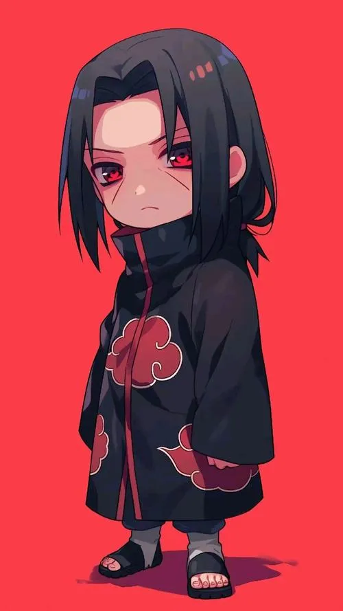 Nếu bạn thích Itachi nhưng không muốn ảnh quá nặng mood, thì Itachi chibi đúng là cứu cánh. Vẫn áo choàng mây đỏ, vẫn mắt đỏ nổi bật, chỉ có điều đầu to hơn, nét bo tròn hơn nên nhìn dễ chịu. Đặt làm avatar hay hình nền đều ổn, nhất là kiểu nền trơn, gọn gàng. Nhìn vừa có chất Itachi, vừa có độ dễ thương kiểu không bị lố.