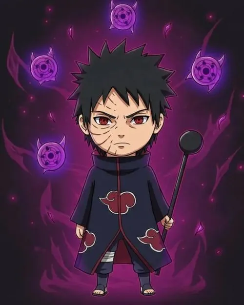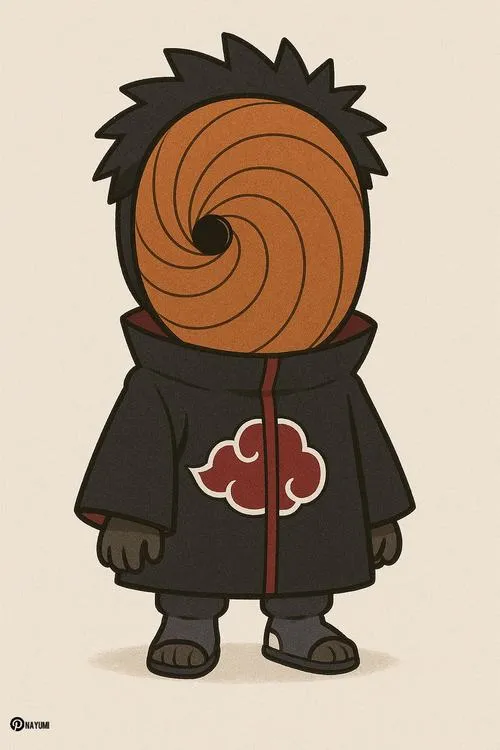 Ai từng bị ám ảnh bởi chiếc mặt nạ xoắn ốc của Obito thì sẽ hiểu, chỉ cần nhìn một cái là nhận ra ngay. Khi đưa Obito vào dạng chibi, cái “u ám” vẫn còn, nhưng được bọc bằng tỉ lệ đầu to thân nhỏ trông dễ gần hơn hẳn. Mà hay ở chỗ, dù đáng yêu, nhân vật vẫn giữ được khí chất lạnh và bí ẩn. Chính sự đối lập này làm ảnh Obito chibi nhìn mãi không chán.