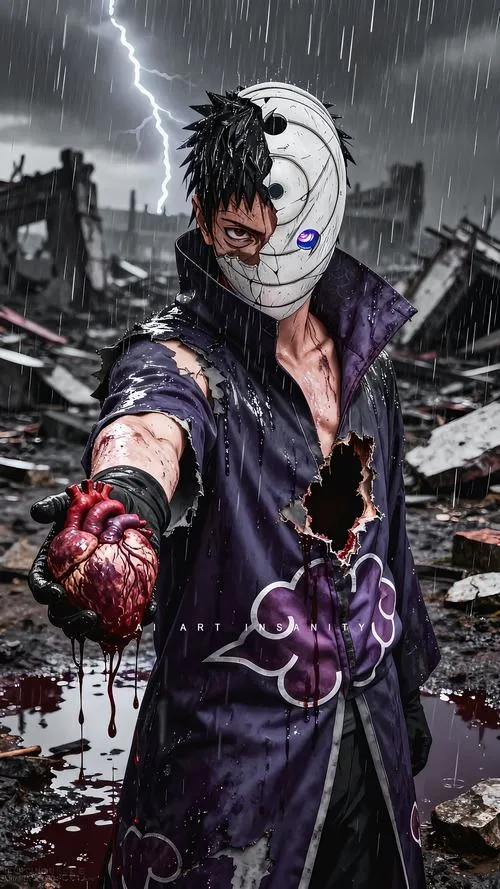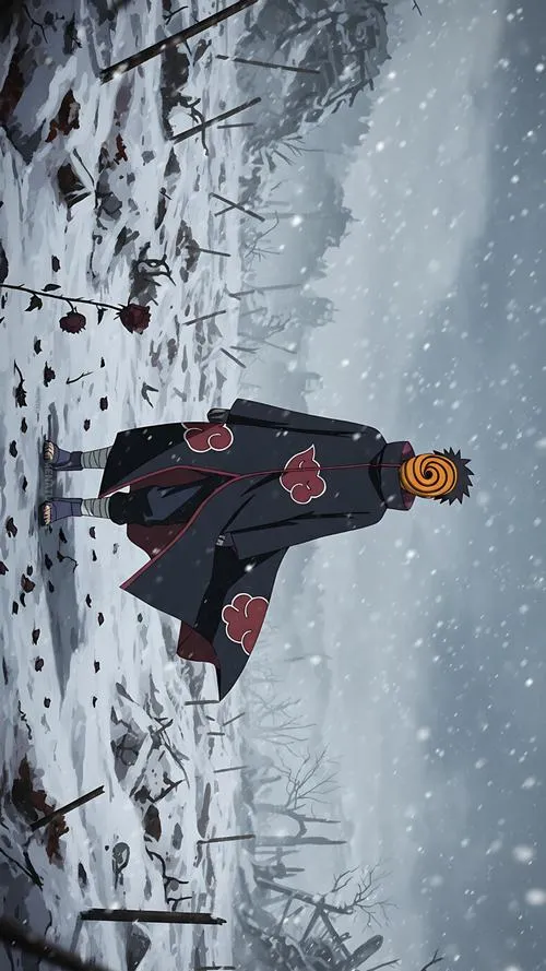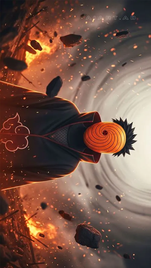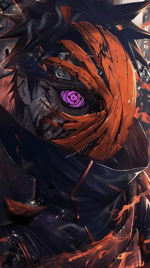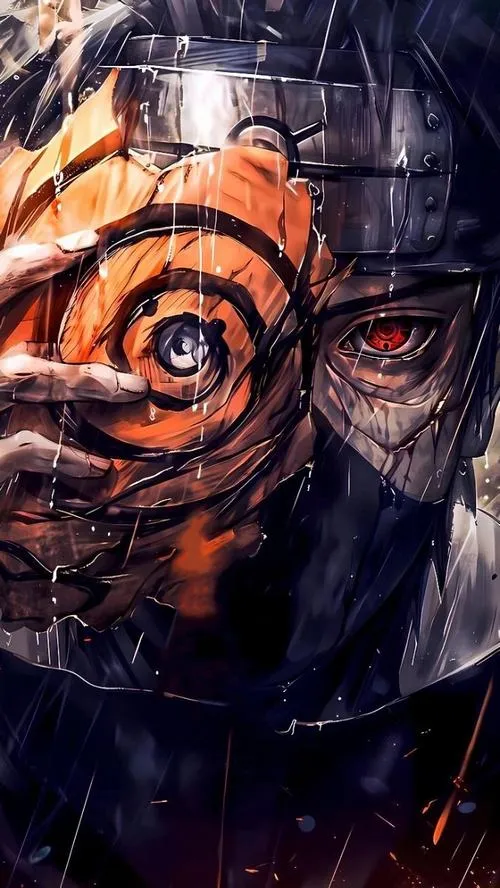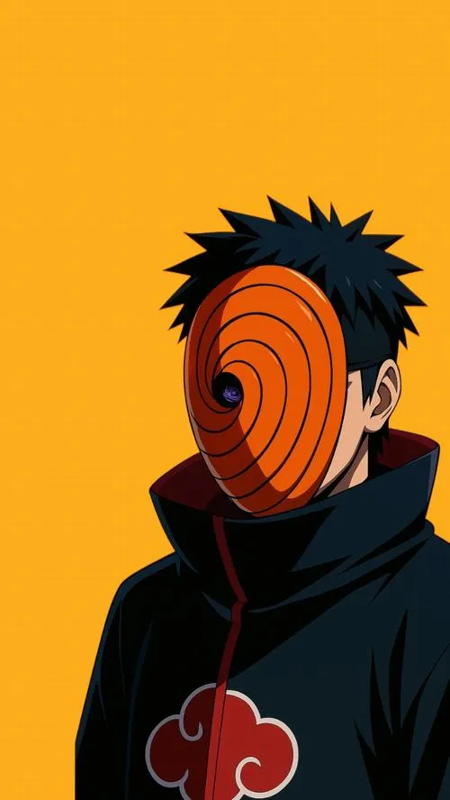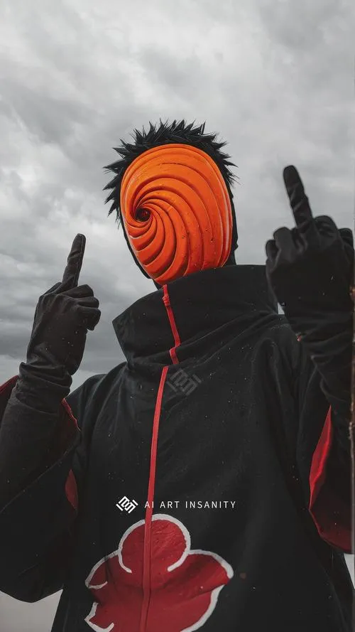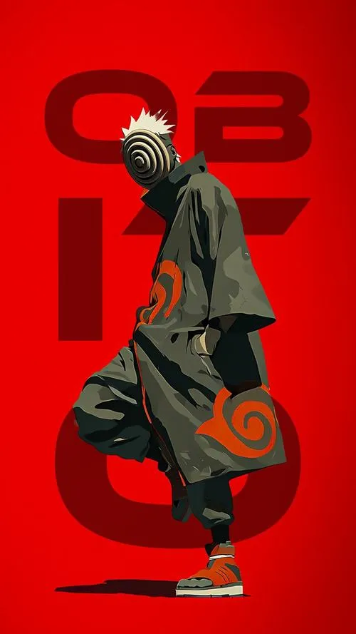 Ảnh Obito đeo mặt nạ thường là kiểu ảnh nhấn mạnh biểu tượng mặt nạ và con mắt lộ ra, dùng tương phản mạnh giữa nền tối và điểm sáng cam hoặc trắng. Mặt nạ cam xoắn ốc hợp cảnh “trêu ngươi”, còn mặt nạ trắng hợp cảnh “lạnh gáy”. Chi tiết cổ áo cao, áo choàng Akatsuki, bóng đổ dày giúp ảnh truyền cảm giác bí ẩn và nguy hiểm.