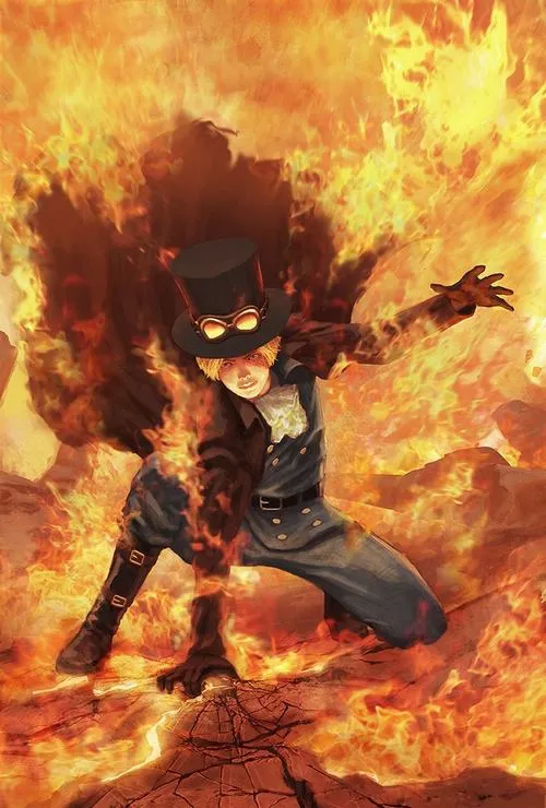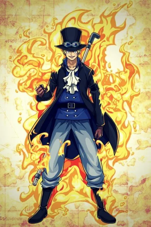 Ảnh Sabo hay có ánh sáng kiểu phim, nền tối vừa đủ để lửa bật lên thành điểm nhấn. Tóc vàng xoăn nhẹ, ánh nhìn thẳng, nửa lạnh nửa ấm, khiến khung hình có độ căng. Chỉ cần đặt thêm ống sắt trên vai là cảm giác hành động đã tới nơi. Nhìn ảnh Sabo, người ta dễ liên tưởng đến một lời thề cũ, một ý chí được truyền lại, và một trận chiến đang đợi phía trước.