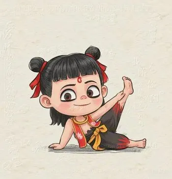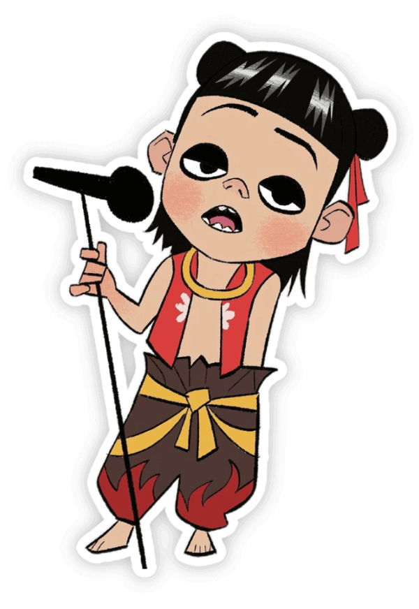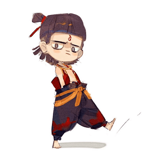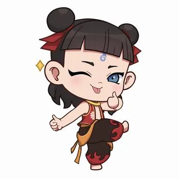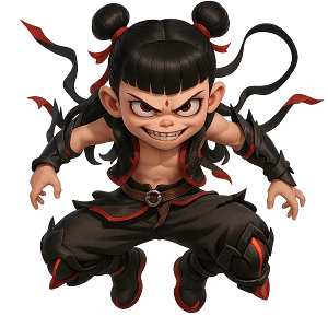 • Đặc điểm: Tóc búi hai bên, mắt quầng thâm và dấu ấn đỏ trên trán.