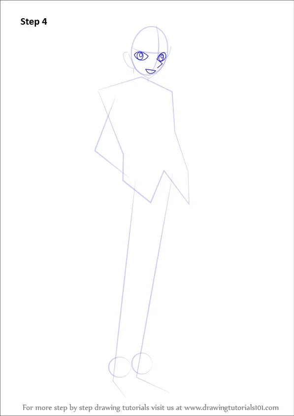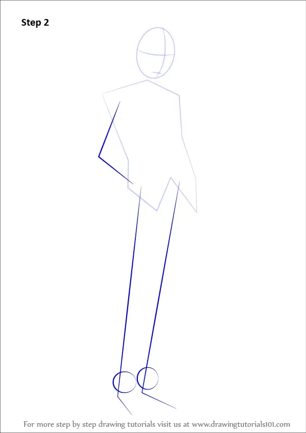 Bước 2: Từ khung thân, vẽ tay và chân theo dạng ống ngắn, thêm bàn chân đơn giản để định dáng tổng thể chibi.