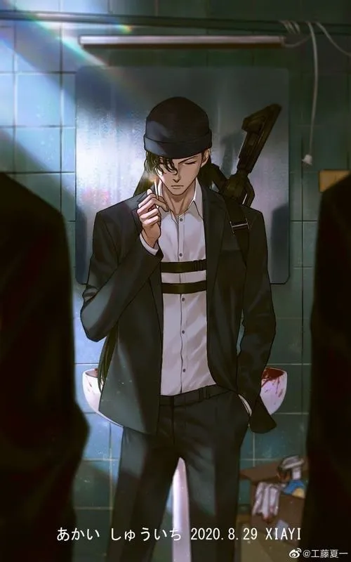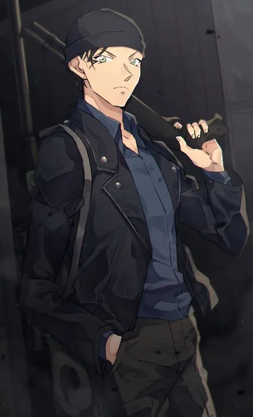 Nếu đặt hình ảnh Akai Shuichi vào tông tối, tăng tương phản và kéo bóng đổ sâu, bạn sẽ thấy một kiểu kịch tính rất “im”. Không cần khói lửa, chỉ cần ánh sáng viền mỏng ở tóc và sống mũi, thêm nền phố đêm hoặc mái nhà, khung hình tự nhiên có cảm giác truy kích. Cái hay là càng ít đạo cụ, thần thái càng nổi.