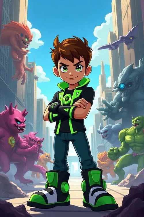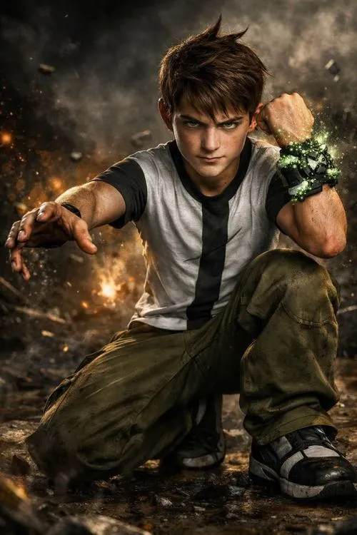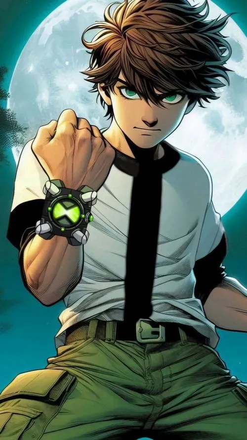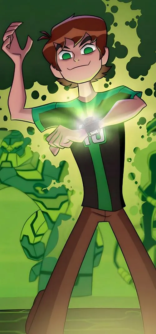 Hình ảnh Ben 10 thường dễ nhận ra nhờ bảng màu xanh lá đi cùng trắng đen, cộng với chiếc đồng hồ ngoài hành tinh phát sáng trên tay trái. Khung hình hay bắt nhịp hành động nhanh: chọn dạng, biến thân, lao vào cứu nguy, rồi trở lại dáng cậu bé tinh nghịch. Chi tiết tóc bù xù và ánh mắt xanh lục tạo cảm giác trẻ trung, hiếu thắng nhưng không xấu, hợp nhất cho poster phòng riêng, ảnh bìa, hoặc minh họa bài viết giải trí.