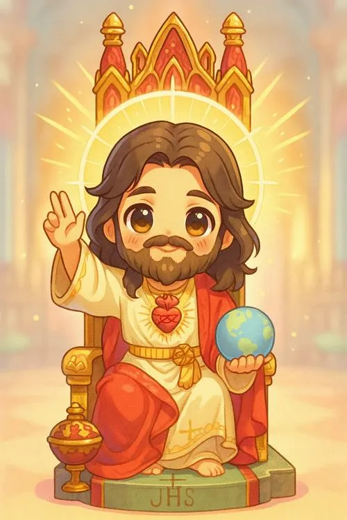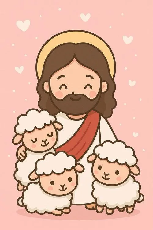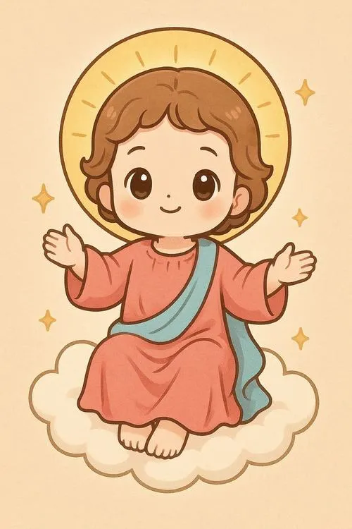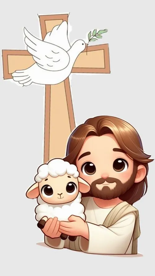 Hình Chúa Giêsu chibi dễ thương là kiểu minh họa chibi hóa với tỷ lệ đầu lớn, thân nhỏ, tay chân ngắn, tạo nét ngộ nghĩnh. Điểm nhấn thường nằm ở đôi mắt to có ánh phản quang, má hồng nhẹ, nụ cười hiền và hào quang tối giản. Màu hay dùng là pastel, be, trắng kem, giúp tổng thể êm mắt. Hợp cho hình nền, sticker, sổ tay, thiệp chúc lành.