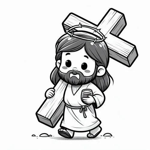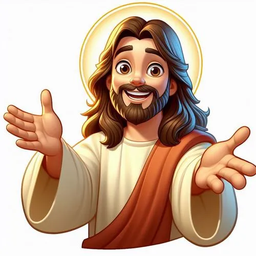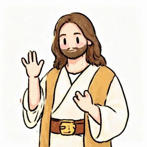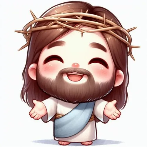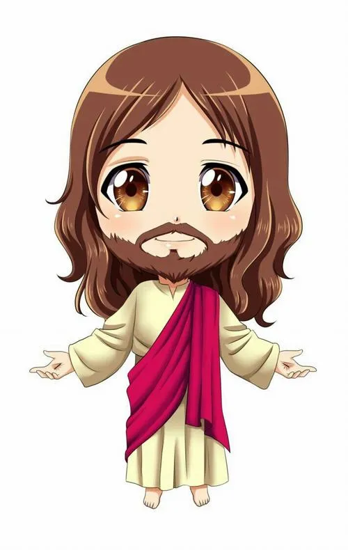Vẽ chúa Giêsu chibi với đôi tay dang nhẹ để tạo cảm giác gần gũi