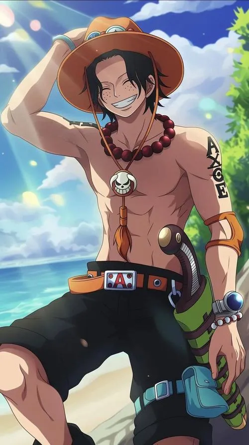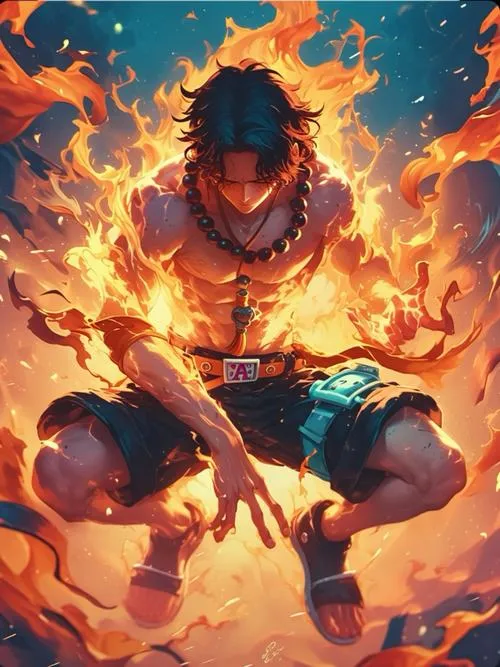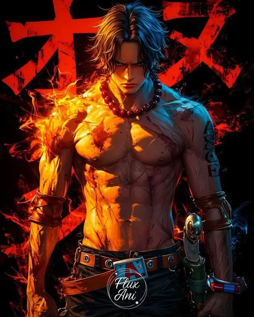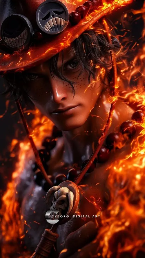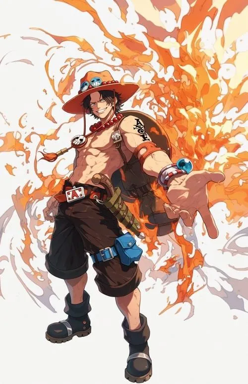 Ảnh Ace hay có tông cam đỏ rực, nền tối vừa đủ để lửa bật lên như đang thở. Cơ bắp gọn, tóc đen rối nhẹ, tàn nhang nằm đúng chỗ khiến gương mặt bớt “hầm”, nhìn gần còn thấy nét trẻ. Bố cục thường chụm vào nắm đấm, tạo cảm giác sắp tung Hỏa Quyền. Một tấm ảnh kiểu này để làm hình nền hay ảnh bìa đều có lực, vì nó kéo mắt người xem rất nhanh.