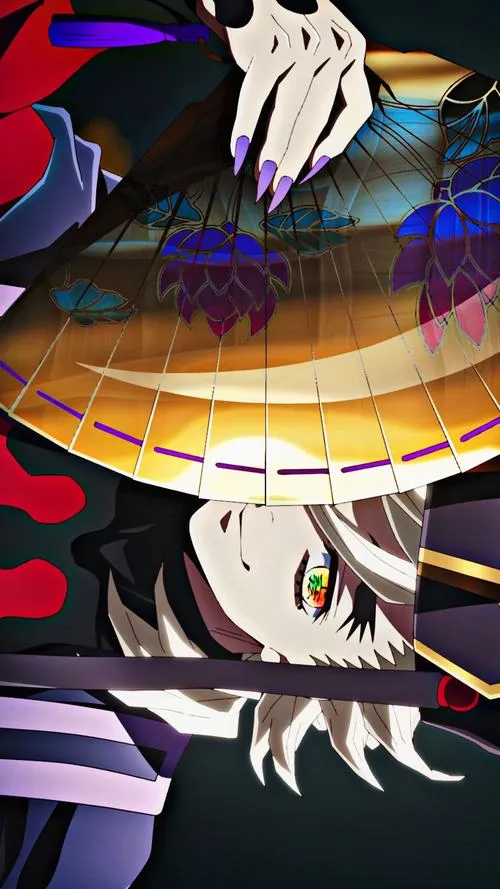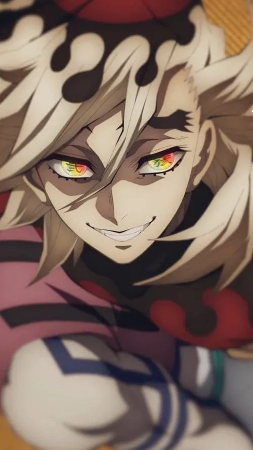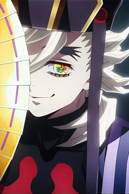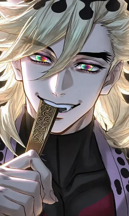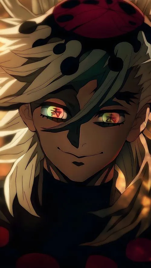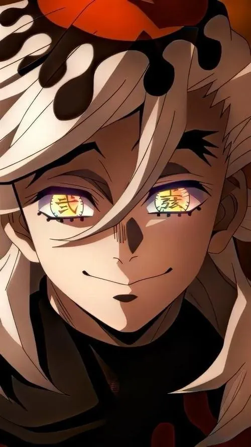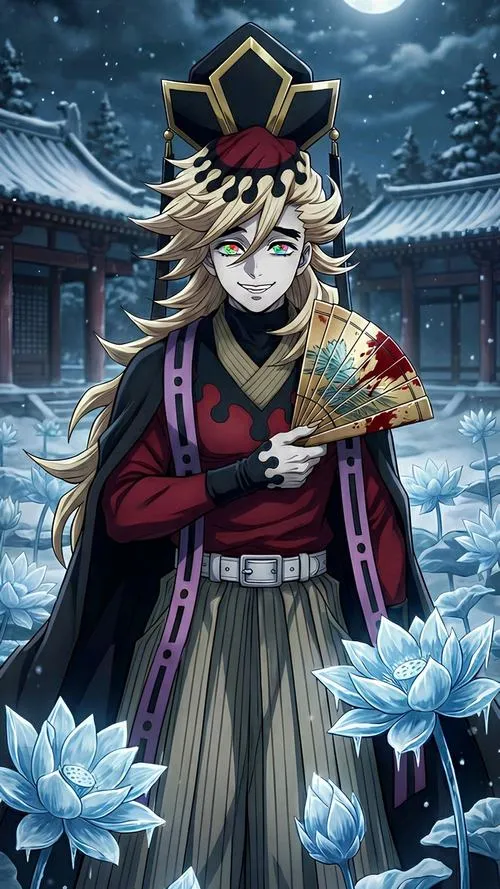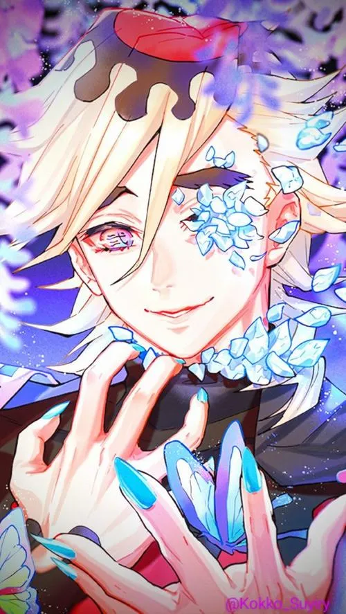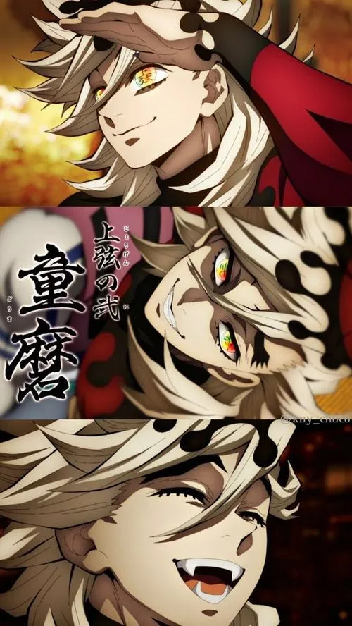 Hình Douma là nhóm ảnh tập trung vào nhận diện Thượng Huyền Nhị: tóc vàng bạch kim, mắt bảy màu có chữ khắc, nụ cười lịch thiệp và cặp quạt vàng sắc. Tông màu thường là lạnh, nền tối hoặc băng tuyết, hợp làm hình nền, avatar, poster. Cảm giác truyền tải thường đẹp lạ, thanh thoát nhưng rợn nhẹ.