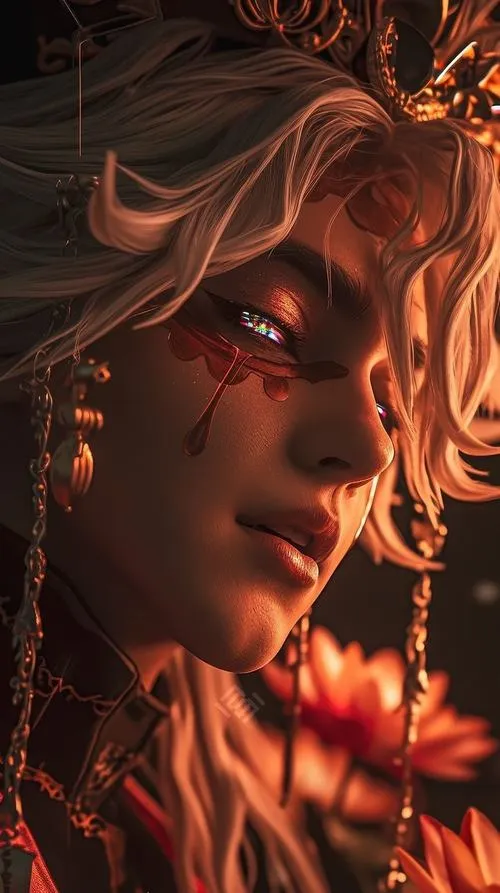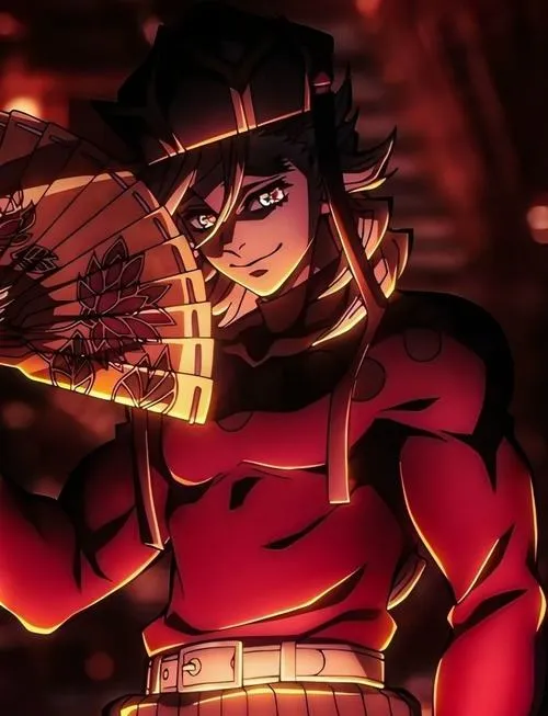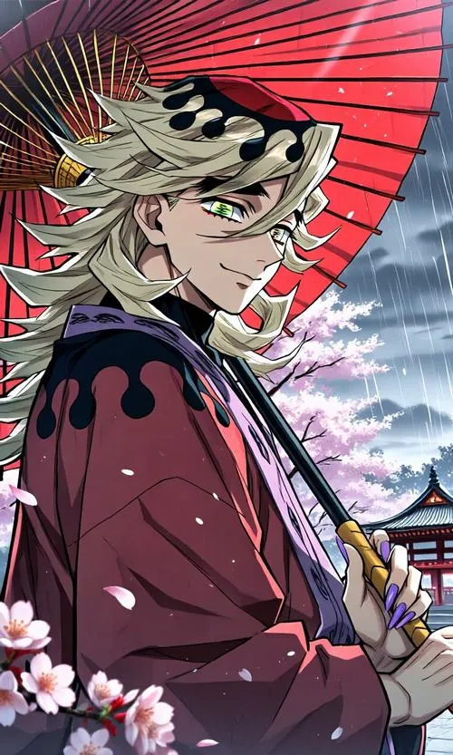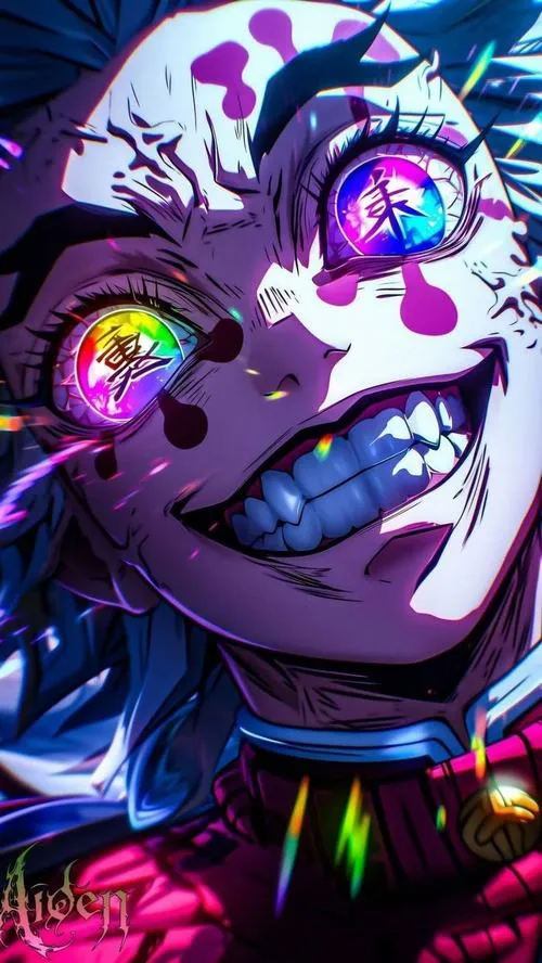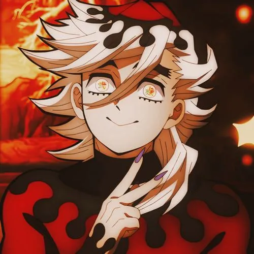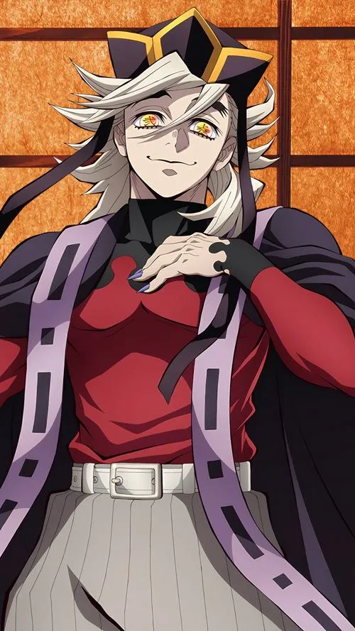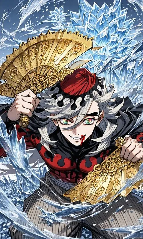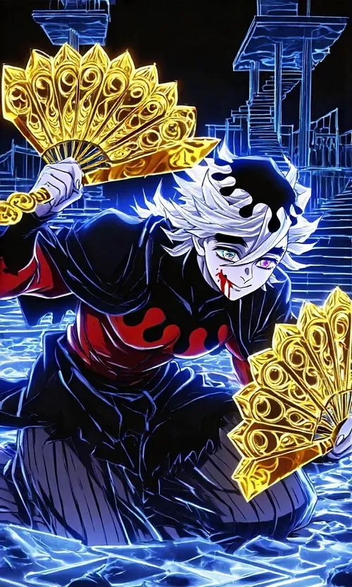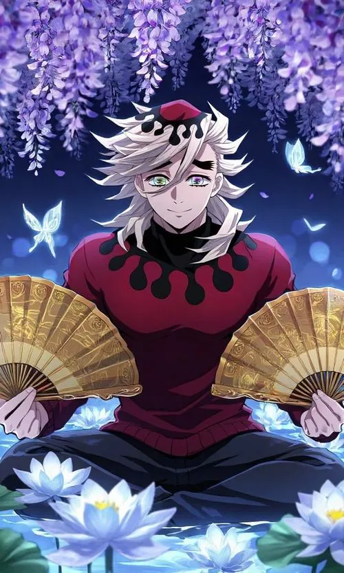 Hình Douma là nhóm ảnh tập trung vào nhận diện Thượng Huyền Nhị: tóc vàng bạch kim, mắt bảy màu có chữ khắc, nụ cười lịch thiệp và cặp quạt vàng sắc. Tông màu thường là lạnh, nền tối hoặc băng tuyết, hợp làm hình nền, avatar, poster. Cảm giác truyền tải thường đẹp lạ, thanh thoát nhưng rợn nhẹ.