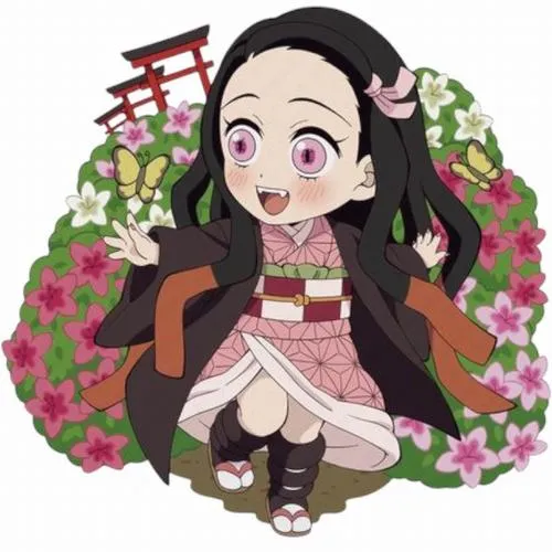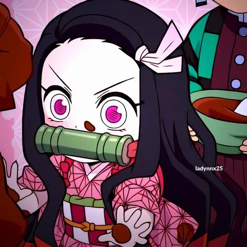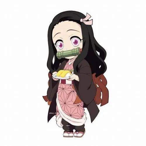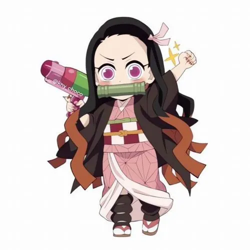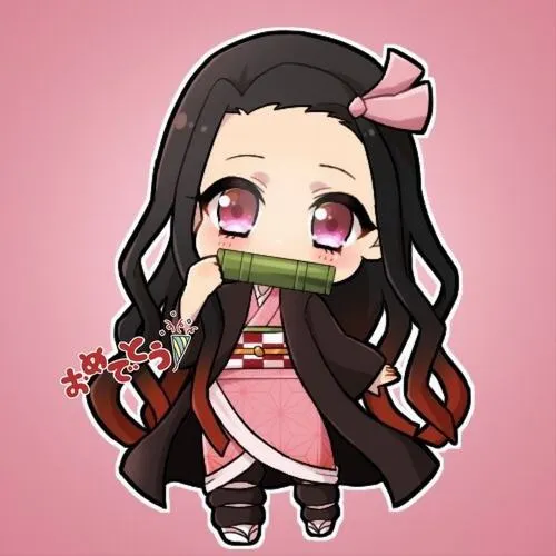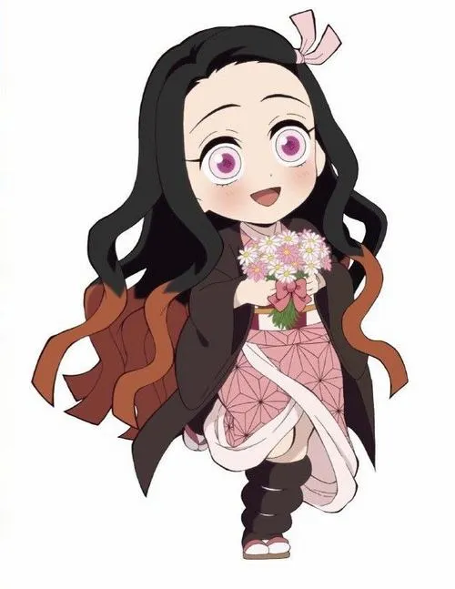 Ảnh Nezuko chibi kiểu như một viên kẹo mềm, nhìn phát là tim tự dưng dịu xuống. Vẫn là Nezuko với kimono hồng, ống tre quen thuộc, nhưng khi đưa vào dáng chibi thì mọi thứ trở nên tròn trịa, nhỏ xíu, đáng yêu quá mức chịu đựng. Mắt to, má hồng, tóc đen pha cam ôm gọn khuôn mặt, tạo cảm giác vừa ngây thơ vừa ấm áp.