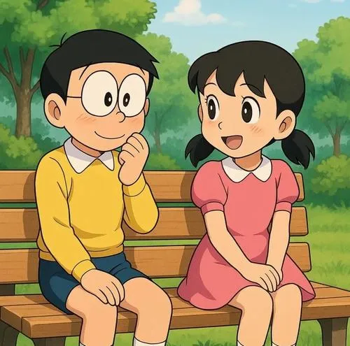 Có những cặp đôi không cần nói lời nào vẫn làm người ta thấy ấm. Ảnh Nobita và Shizuka dễ thương thường bắt trúng đúng cái rung rinh rất nhỏ của tuổi học trò: ánh mắt né tránh, nụ cười hiền, và một chút vụng về đáng yêu. Chỉ vài khung hình như che ô, đưa quyển vở hay đứng chờ trước cổng nhà cũng đủ khiến lòng dịu lại.