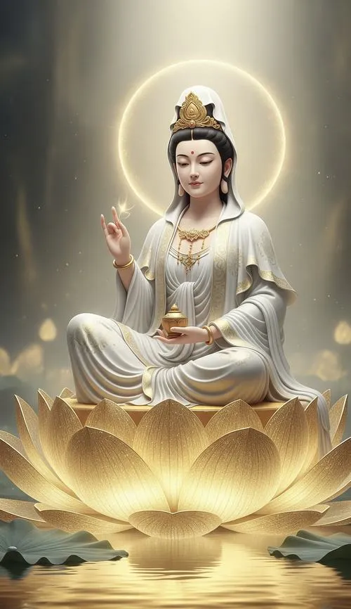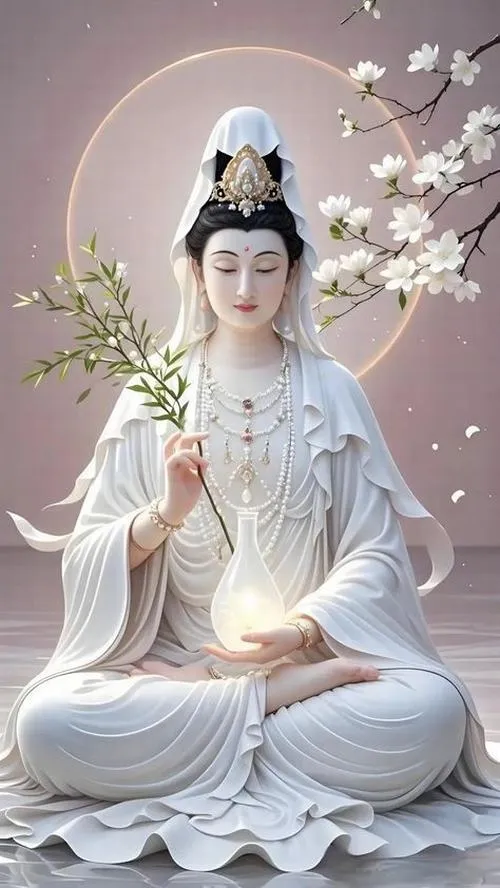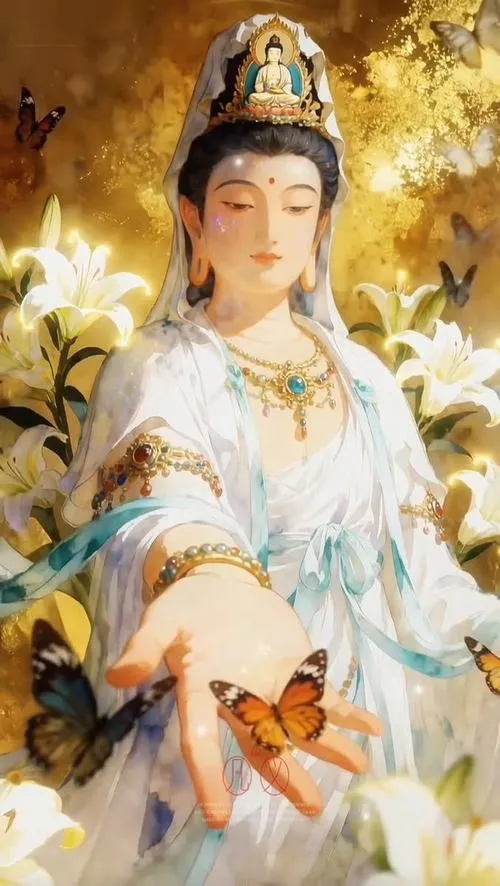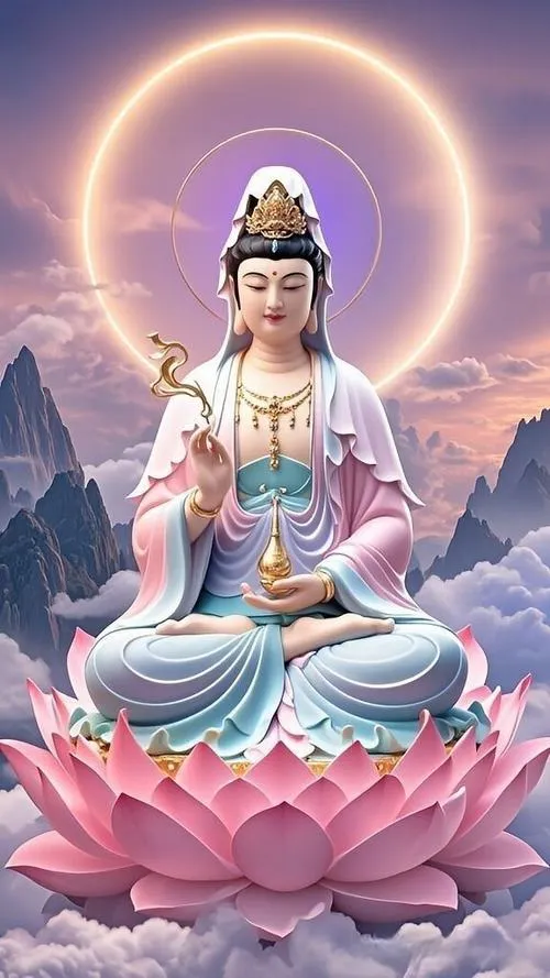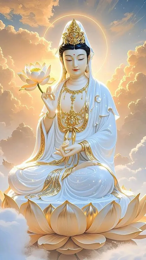 Tông màu phổ biến là trắng ngà, vàng kim, xanh ngọc hoặc nâu trầm, ánh sáng dịu để giữ sự thanh tịnh. Loại ảnh này hợp đặt ở không gian thờ, góc tĩnh trong nhà, hoặc làm ảnh nền khi muốn tạo cảm giác an yên, nhắc mình sống mềm và bớt nóng.