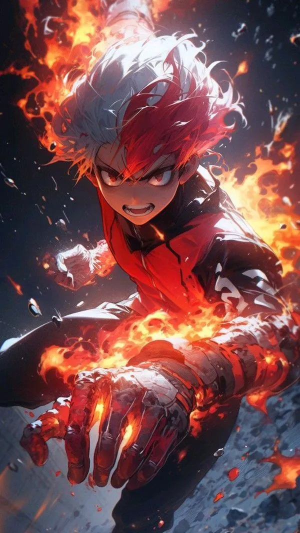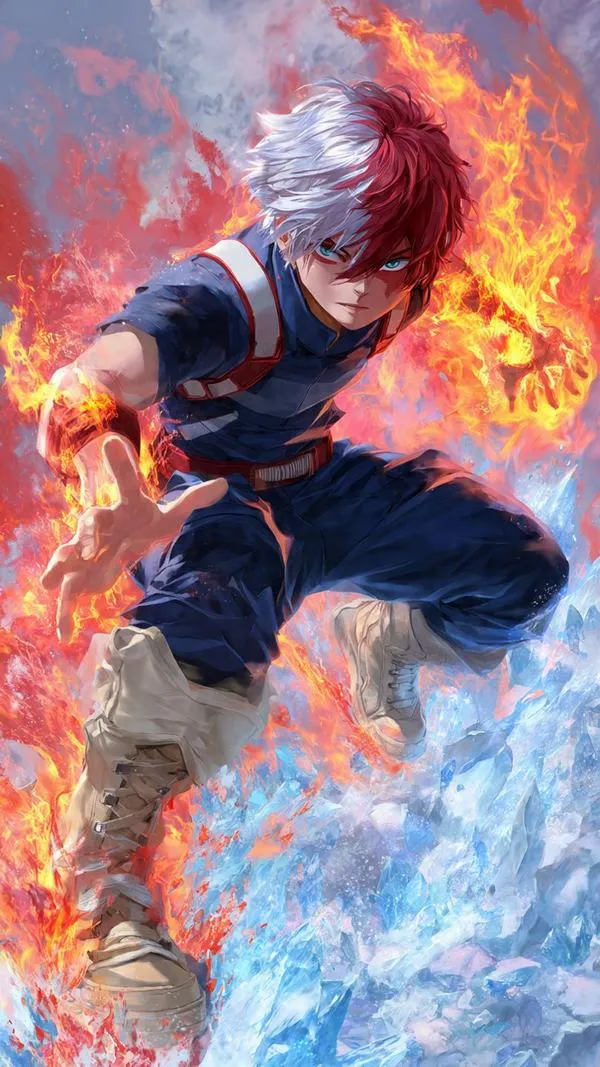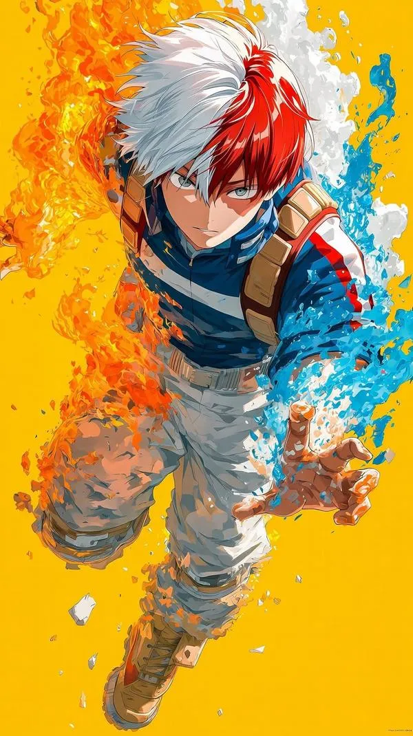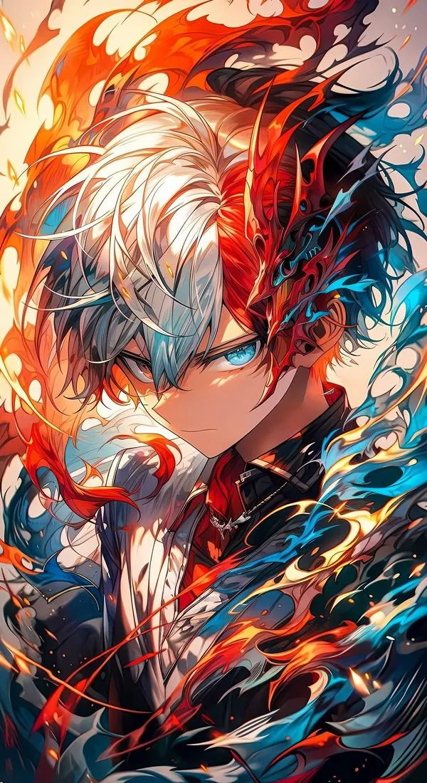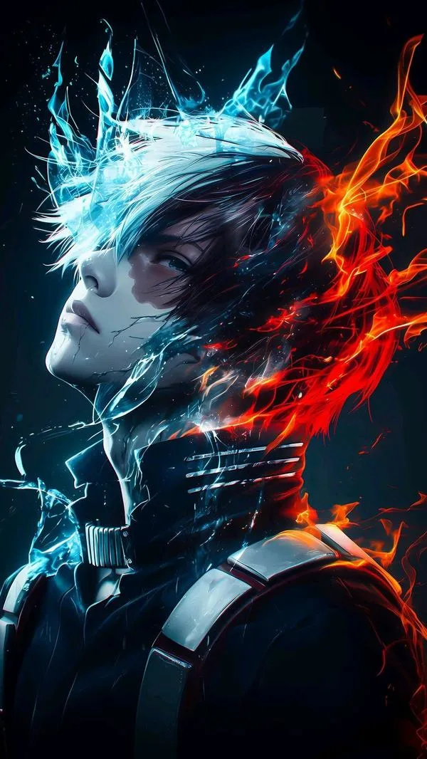 Hình ảnh Shoto Todoroki giống như một bức tranh bị xé làm đôi rồi ghép lại: một nửa là băng lạnh cứng, nửa kia là lửa nóng rực. Chỉ cần đứng yên thôi, cậu đã tạo cảm giác như không khí quanh mình đổi nhiệt. Vì thế ảnh của Shoto thường rất “ăn” ánh sáng, ăn màu, và ăn cả biểu cảm. Nhìn kỹ sẽ thấy, cái lạnh ấy không trống rỗng.