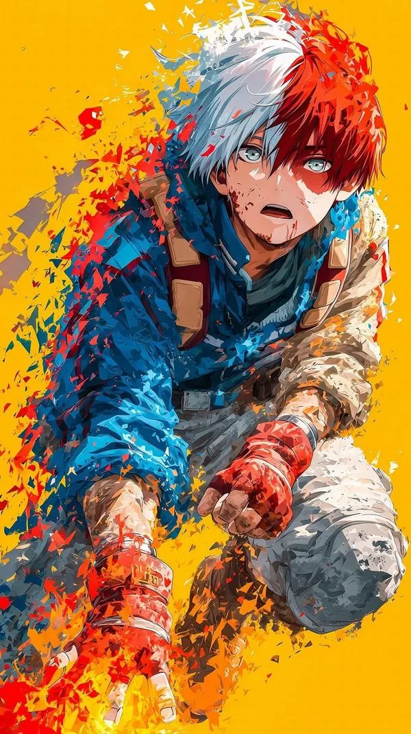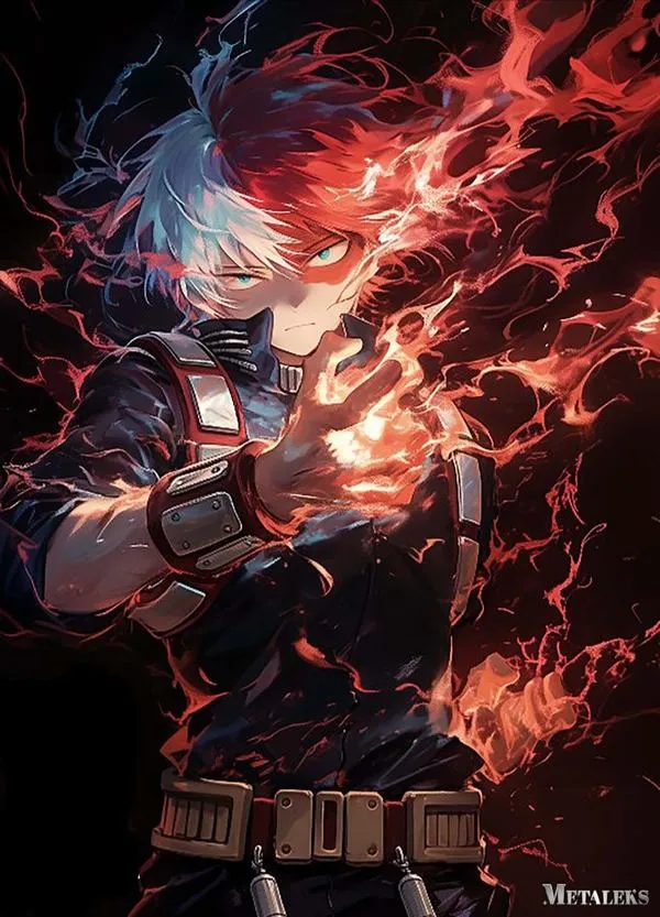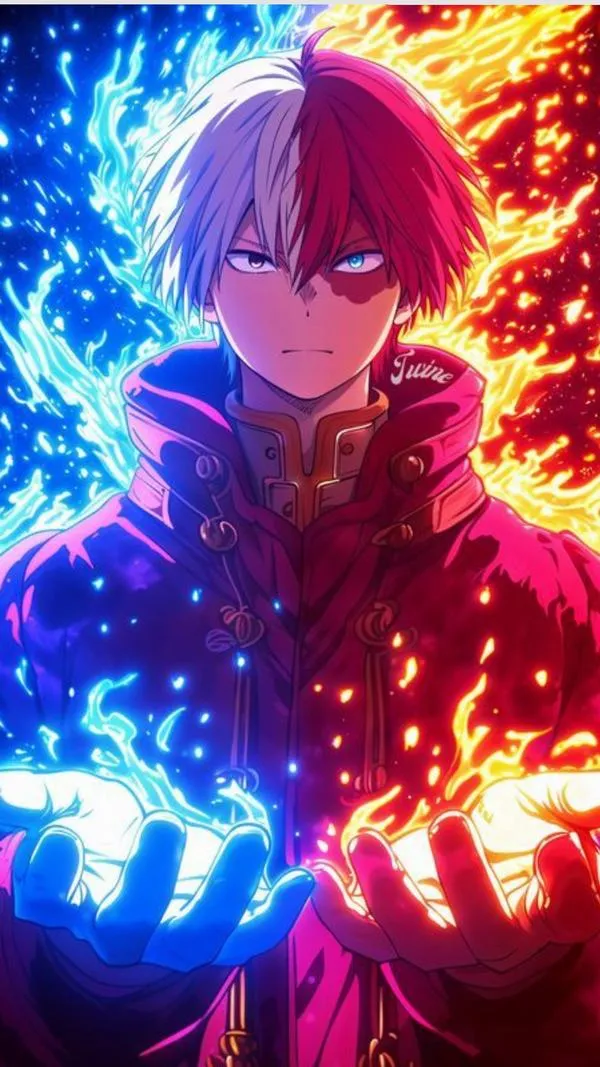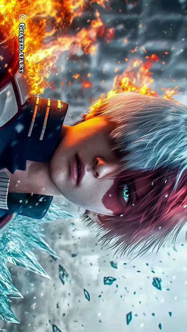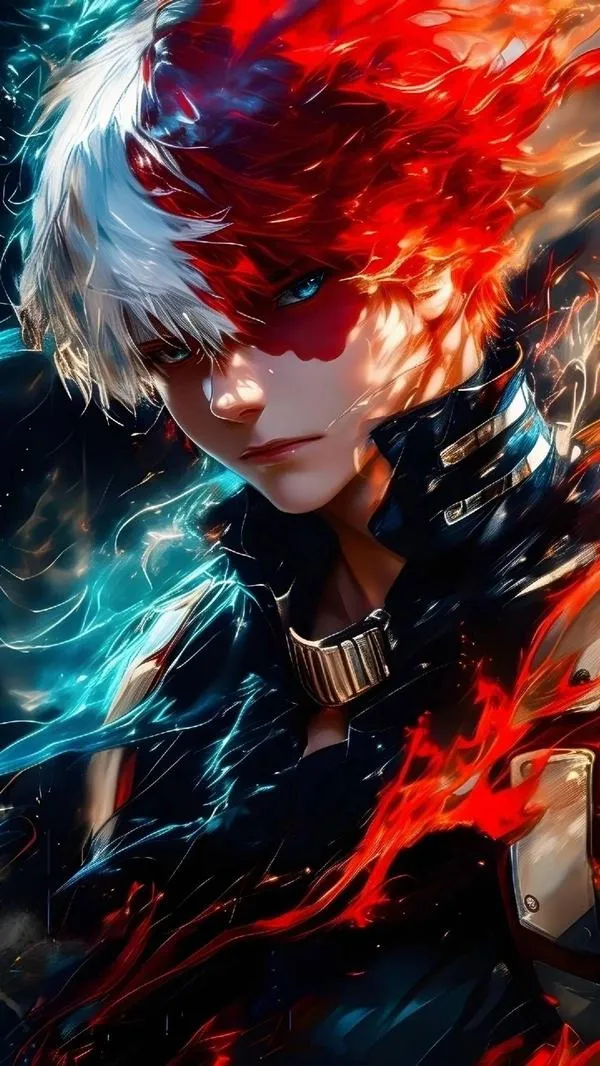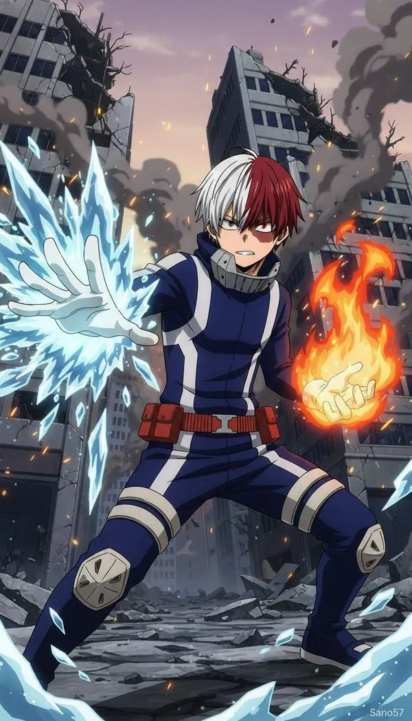 Hình ảnh Shoto Todoroki giống như một bức tranh bị xé làm đôi rồi ghép lại: một nửa là băng lạnh cứng, nửa kia là lửa nóng rực. Chỉ cần đứng yên thôi, cậu đã tạo cảm giác như không khí quanh mình đổi nhiệt. Vì thế ảnh của Shoto thường rất “ăn” ánh sáng, ăn màu, và ăn cả biểu cảm. Nhìn kỹ sẽ thấy, cái lạnh ấy không trống rỗng.