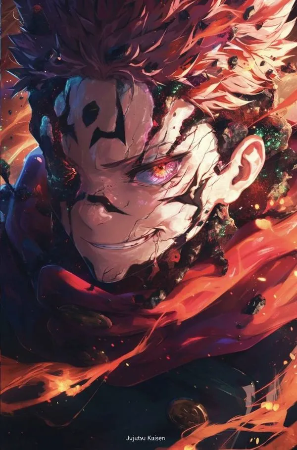 Hình ảnh Sukuna thường được dùng để biểu đạt quyền lực tuyệt đối và nỗi sợ mang tính huyền thoại. Các chi tiết dị tướng và vằn xăm đen khiến nhân vật giống một dấu ấn thảm họa, vừa cuốn hút vừa cảnh báo. Người xem nhìn thấy sự áp đảo, lạnh lùng và bạo lực có kiểm soát.