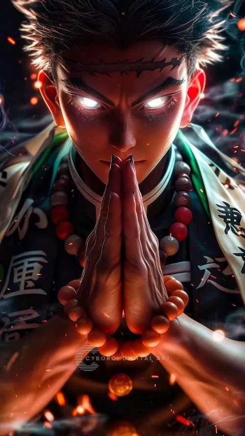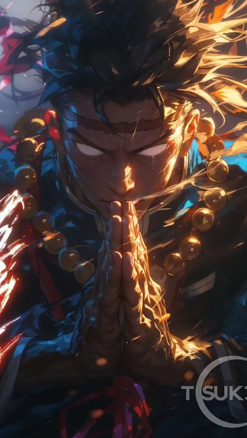 Ảnh Gyomei Himejima thường đại diện cho sức mạnh đi kèm lòng thương người. Nó gợi cảm giác kỷ luật, niềm tin và sự bảo hộ, kiểu đứng cạnh là thấy an toàn. Chuỗi tràng hạt và tư thế cầu nguyện khiến thông điệp không chỉ là chiến đấu, mà là giữ vững tâm.
