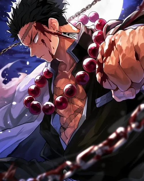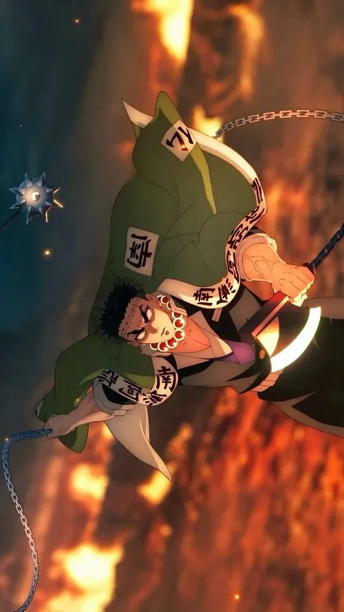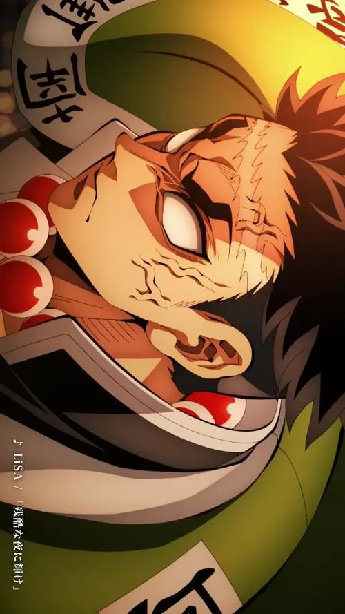 Về mặt thị giác, ảnh Gyomei thường thắng ở tương phản và hình khối. Nền tối giúp haori, sẹo trán, tràng hạt và vũ khí xích nổi lên rõ ràng, tạo điểm nhìn mạnh. Cộng thêm biểu cảm thương người, khung hình tránh được cảm giác “khoe sức”. Vì vậy ảnh Gyomei vừa hợp làm hình nền, vừa hợp để sưu tầm theo mood chiến đấu lẫn mood tĩnh.