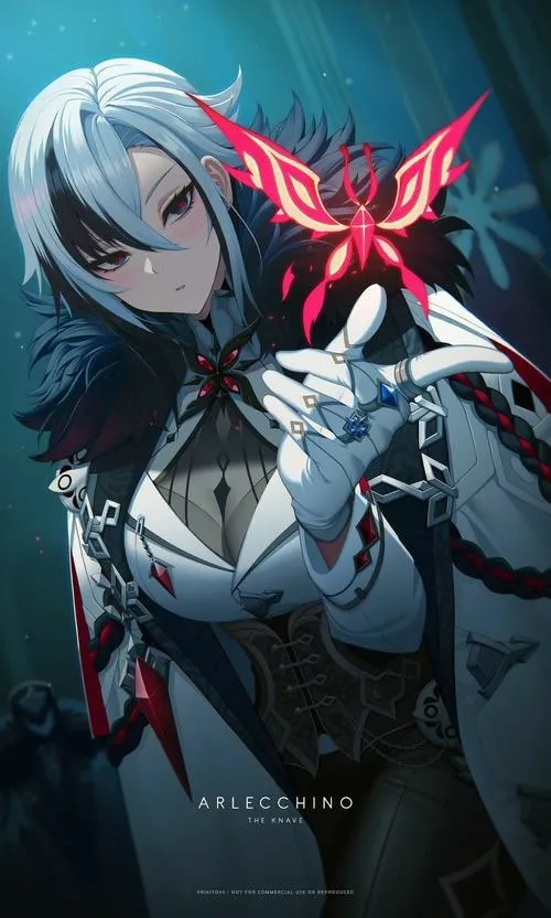 Arlecchino là nhân vật 5★ thuộc nguyên tố Hỏa (Pyro) trong game Genshin Impact, được biết đến với danh hiệu “The Knave” và là Đặc sứ thứ tư của Fatui Harbingers. Cô hiện giữ vai trò “Cha” (Father) của Nhà Hearth (House of the Hearth), nơi nuôi dưỡng và huấn luyện các đặc vụ trẻ tuổi cho Fatui. Arlecchino nổi tiếng với phong thái lạnh lùng, tư duy thực dụng và cách hành xử quyết đoán, không khoan nhượng.