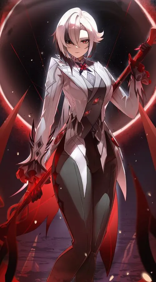 Hình nền Arlecchino thường là ảnh chân dung cận mặt hoặc toàn thân, bố cục trung tâm rõ ràng, nhấn vào tóc trắng, trang phục đen đỏ và cây trường thương. Màu sắc ưu tiên tương phản mạnh, hay có viền lửa đỏ, khói tro mỏng, bóng đổ sâu. Hợp lúc bạn muốn màn hình trông “có lực”, truyền cảm giác lạnh, gọn, dứt khoát.