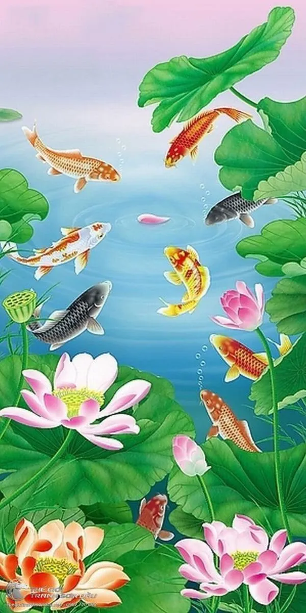 Hình nền cá chép hoa sen là dạng ảnh lấy mặt nước và cụm sen làm nền, cá chép làm điểm nhấn chuyển động. Màu thường xoay quanh hồng sen, xanh lá và đỏ cam của cá, thêm vàng nhụy để bắt mắt. Hợp lúc muốn màn hình trông thoáng, dịu, tạo cảm giác thanh sạch và êm, nhất là khi làm việc hoặc thư giãn.