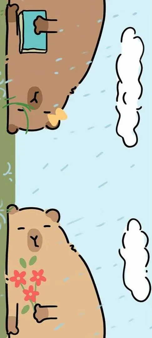 Capybara là chuột lang nước, loài gặm nhấm lớn nhất thế giới, nổi tiếng vì dáng vẻ chậm rãi và tính cách hiền hòa. Khi xuất hiện trong ảnh nền, chúng tạo cảm giác rất dễ chịu nhờ gương mặt bình thản, thân hình tròn trịa và nhịp sống như chẳng vội vàng điều gì.
