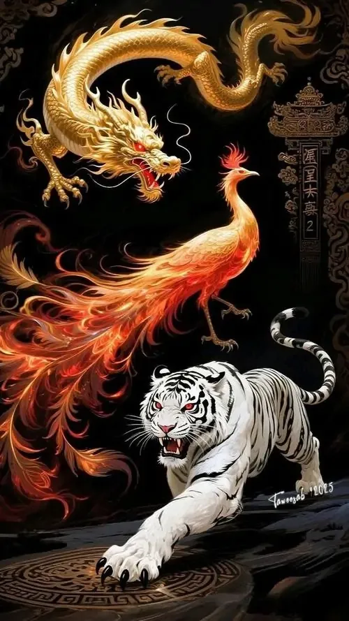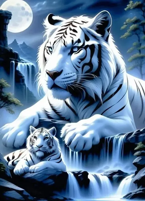 | Giáp Dần | Đại Khê Thủy | Đen, xanh dương | Hổ bên thác nước, nền đêm, ánh sáng sâu |