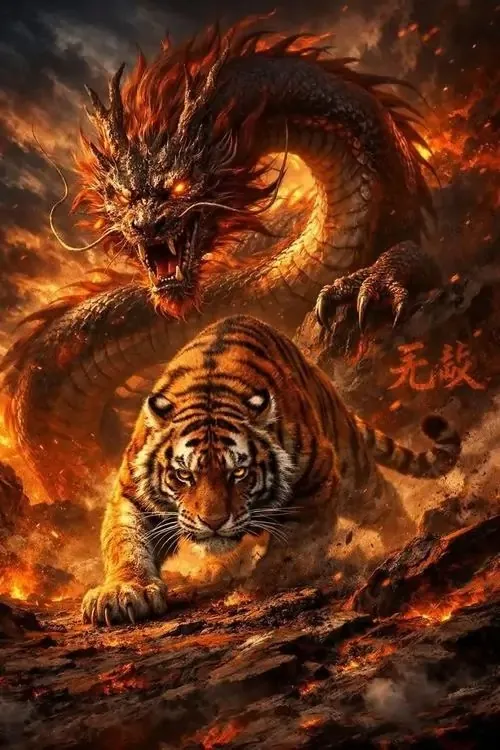 | Bính Dần | Lư Trung Hỏa | Đỏ, cam | Hổ lửa, ánh sáng bùng nổ, nền cháy rực |