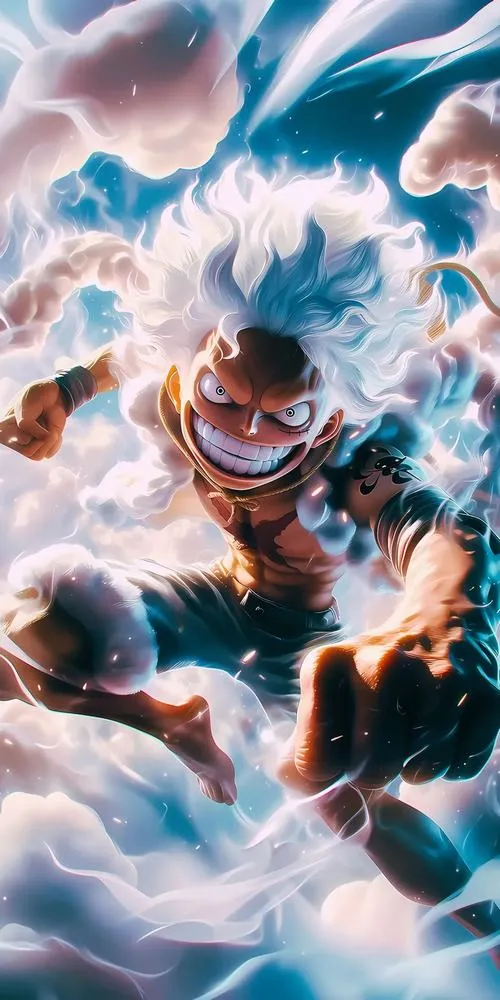 Muốn màn hình nhìn phát đã thấy sảng khoái thì cứ chơi hình nền Luffy Gear 5. Trắng tinh, sáng bừng, lại còn cái vibe cười Hyahyahya rất “không sợ đời”. Tóc mây nhìn mềm, vầng mây quanh cổ vai nhìn cực ngầu, mắt thì đỏ hoặc vàng kiểu bùng năng lượng. Nó hợp mấy ai thích sự vui nhộn nhưng vẫn muốn ngầu theo kiểu khác, không hằm hằm mà vẫn áp đảo.