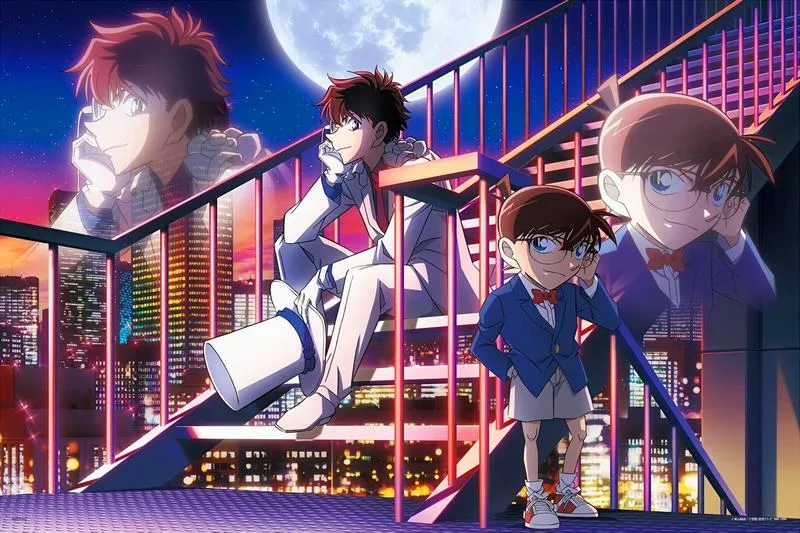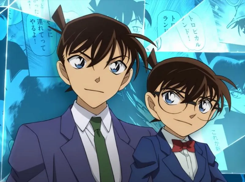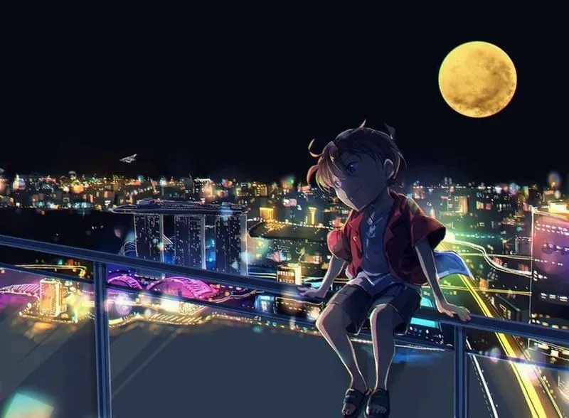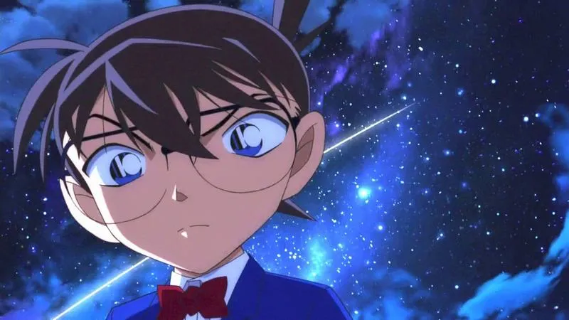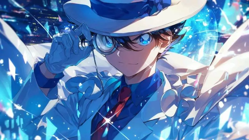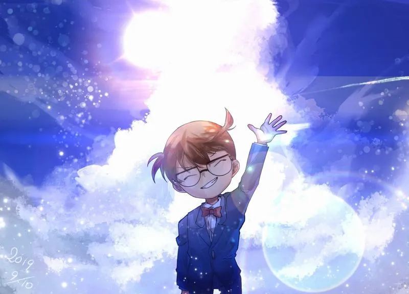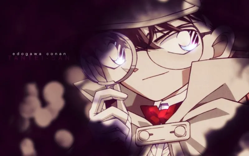 Màu xanh đêm phủ lên nền desktop, ánh đèn đường loang nhẹ, Conan đứng nghiêng người như đang nghe nhịp tim của vụ án. Một chiếc kính gọng tròn bắt sáng, một nơ đỏ chặn ánh nhìn đúng điểm. Hình nền máy tính Conan kiểu này khiến màn hình trông “sạch”, có chiều sâu, và đặc biệt hợp những ai thích cảm giác bí ẩn vừa đủ, không nặng nề nhưng cũng không nhạt.