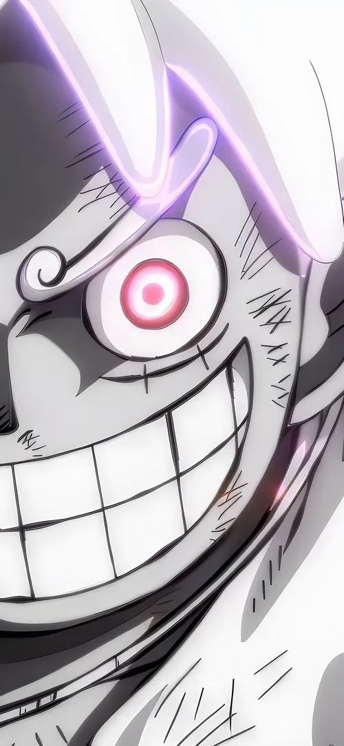 - 75 Hình Nền Luffy Gear 5 4K Cực Ngầu với tông trắng rực sáng và nụ cười điên cuồng