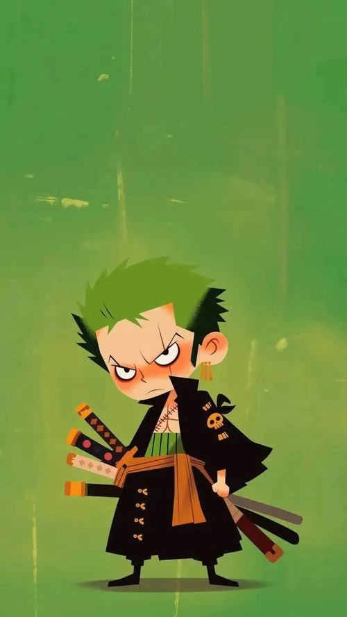 - Bộ 50 Ảnh Zoro Chibi cute cầm ba thanh kiếm tóc xanh rêu và sẹo mắt trái nổi bật