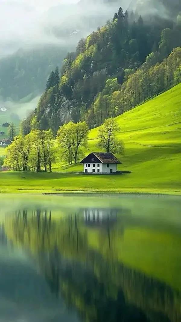 - Muốn bình yên: chọn hồ nước, rừng mờ sương, trời nhiều mây