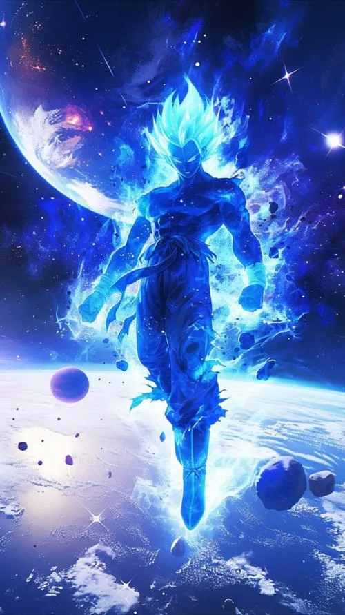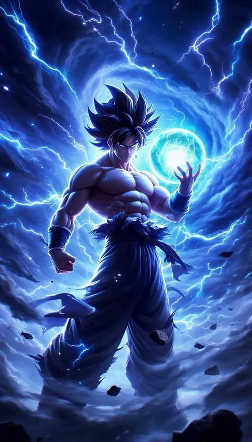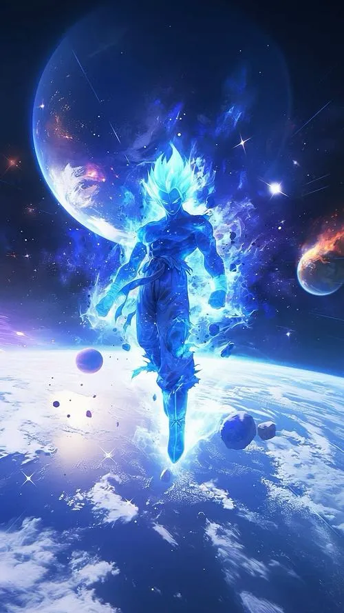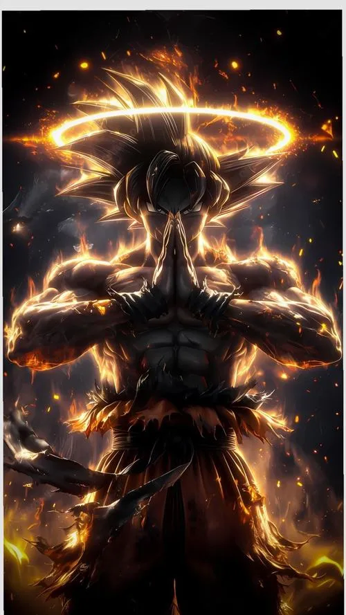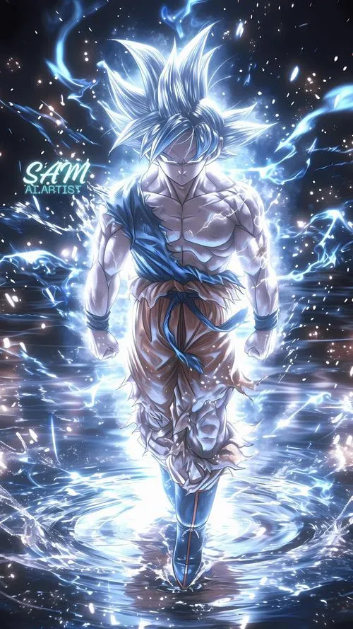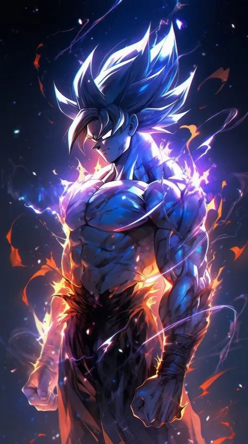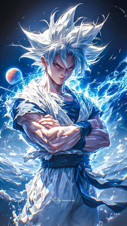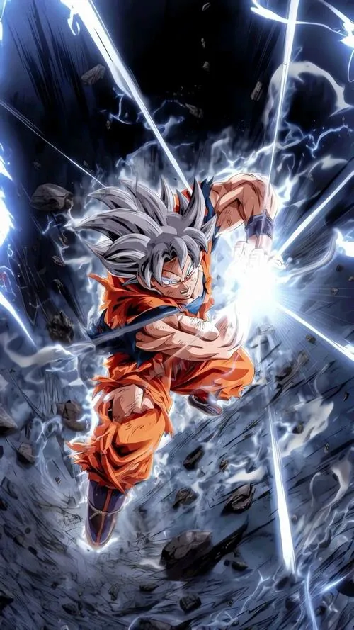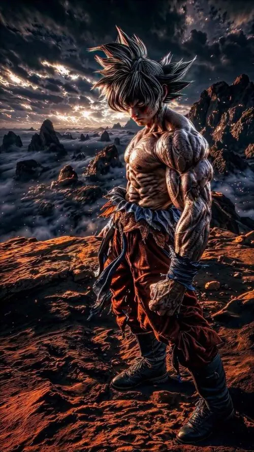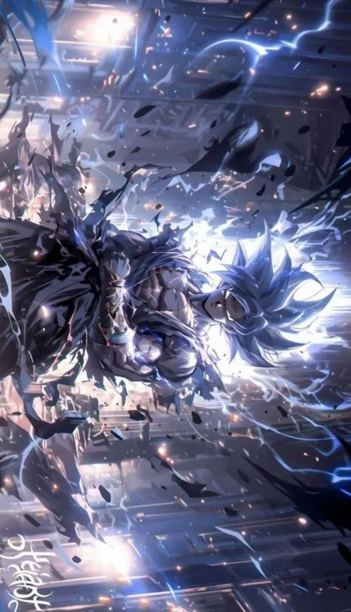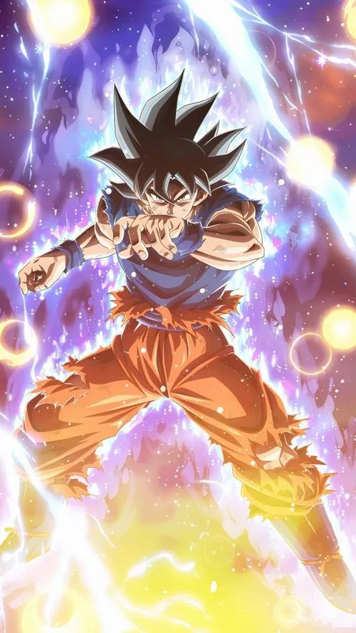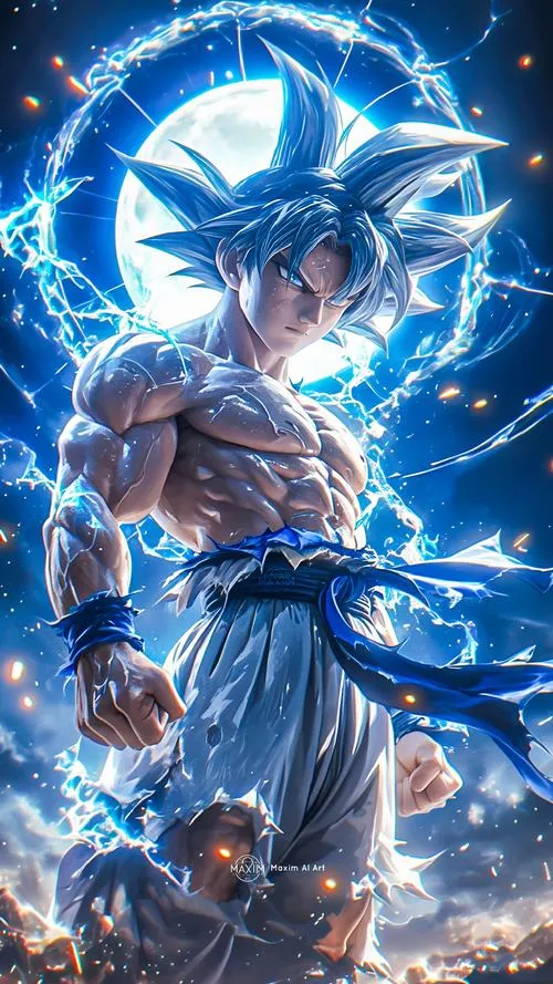 Songoku vô cực đứng giữa nền vũ trụ tối, bụi sáng bay lơ lửng, viền quang cắt gọn quanh người. Tóc khi đen khi thì ánh kim như kiểu Super Saiyan cấp 1000, thậm chí là 10000, khi bạc rực như kim loại nóng, tất cả dồn vào một điểm là ánh nhìn tĩnh lặng. Hình nền Songoku cấp cuối bản năng vô cực vì thế không chỉ đẹp, mà còn có độ “nặng” của một cảnh giới tối thượng.