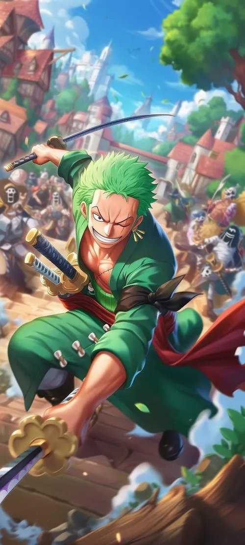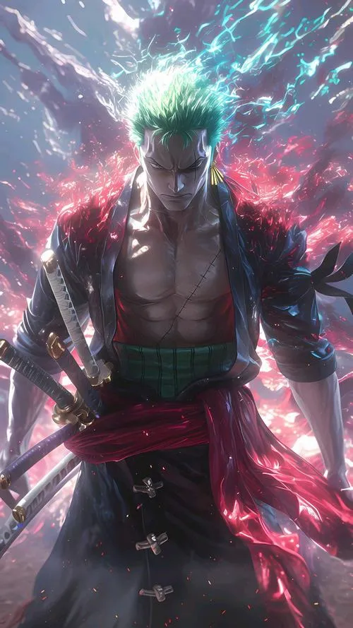 Zoro kiểu nhân vật càng nhìn càng dính. Cái chất lạnh, ít nói, nhưng ra tay là dứt khoát. Hình nền Zoro 4k ngầu mà đúng cảnh bật sức mạnh thì khỏi bàn, ánh kiếm căng như kéo ngang màn hình. Mà hay ở chỗ nó không cần quá nhiều màu mè, chỉ một nền tối, vài vệt sáng, là đủ làm người ta cảm giác áp lực. Ai từng thích những khoảnh khắc Zoro đứng chắn trước đồng đội sẽ hiểu.