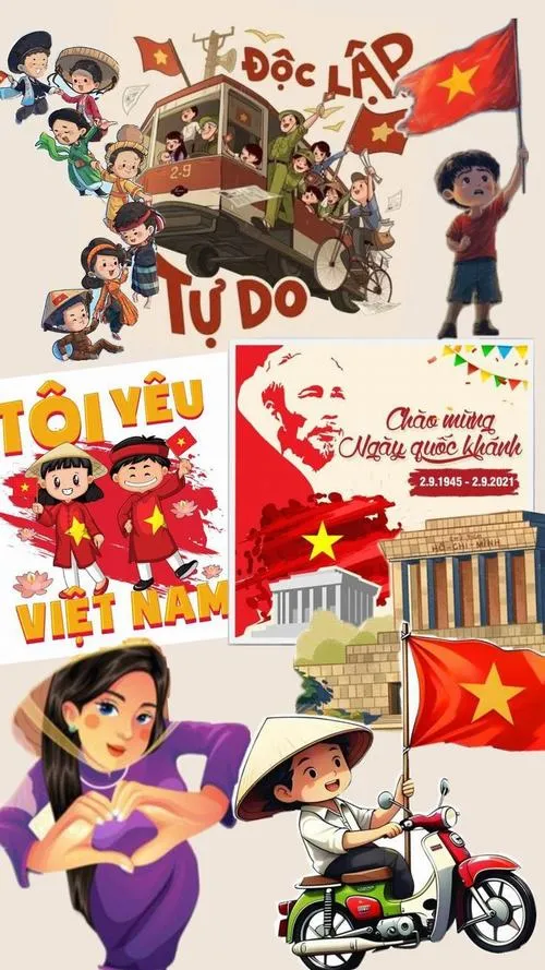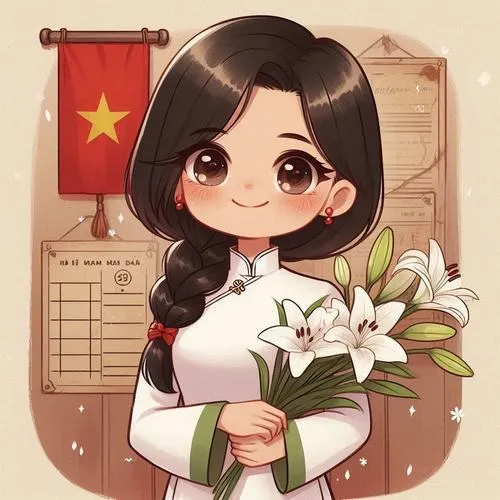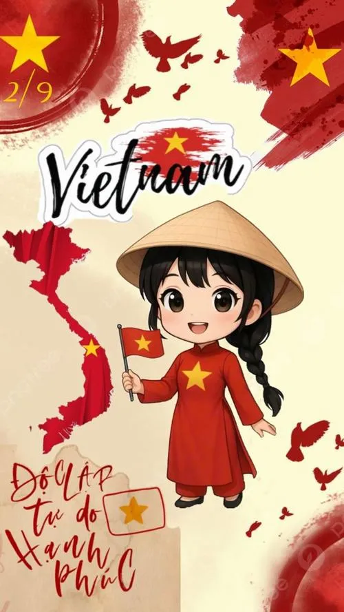 Ảnh chibi lễ 2/9 hay 30/4 là tranh minh họa nhân vật theo tỉ lệ đầu to, dáng nhỏ, biểu cảm rõ, gắn với biểu tượng ngày thống nhất như cờ đỏ sao vàng, trang phục đoàn đội, quân phục, hoa sen, dải băng kỷ niệm. Màu chủ đạo thường là đỏ, vàng, xanh lá hoặc xanh dương nhẹ để tạo cảm giác tươi sáng, trang nghiêm vừa đủ, hợp làm ấn phẩm trường lớp và truyền thông ngày lễ.